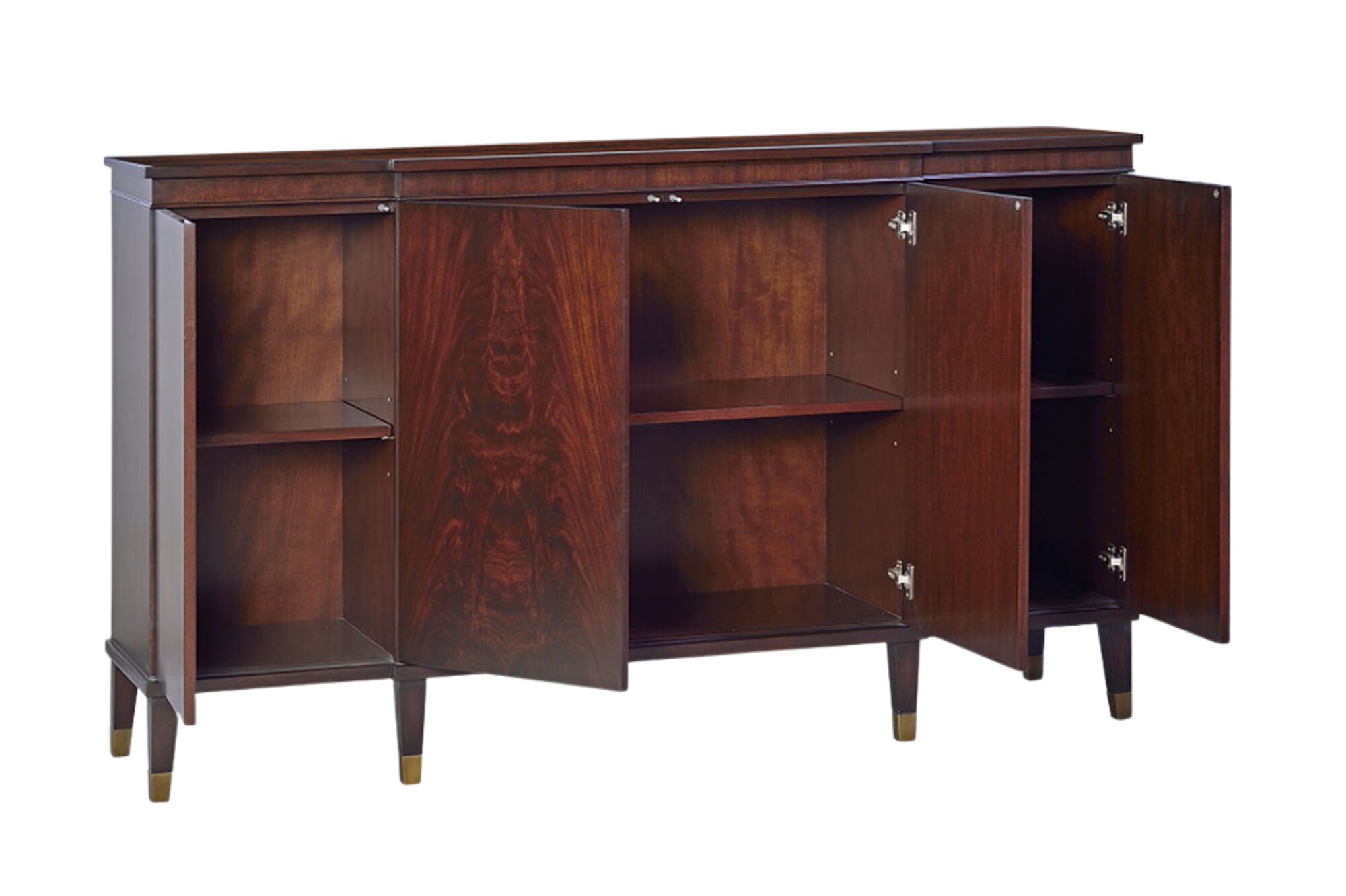 Home » Dining Room » Transitional Flame Mahogany Sideboard With Brass-Capped Spade Feet