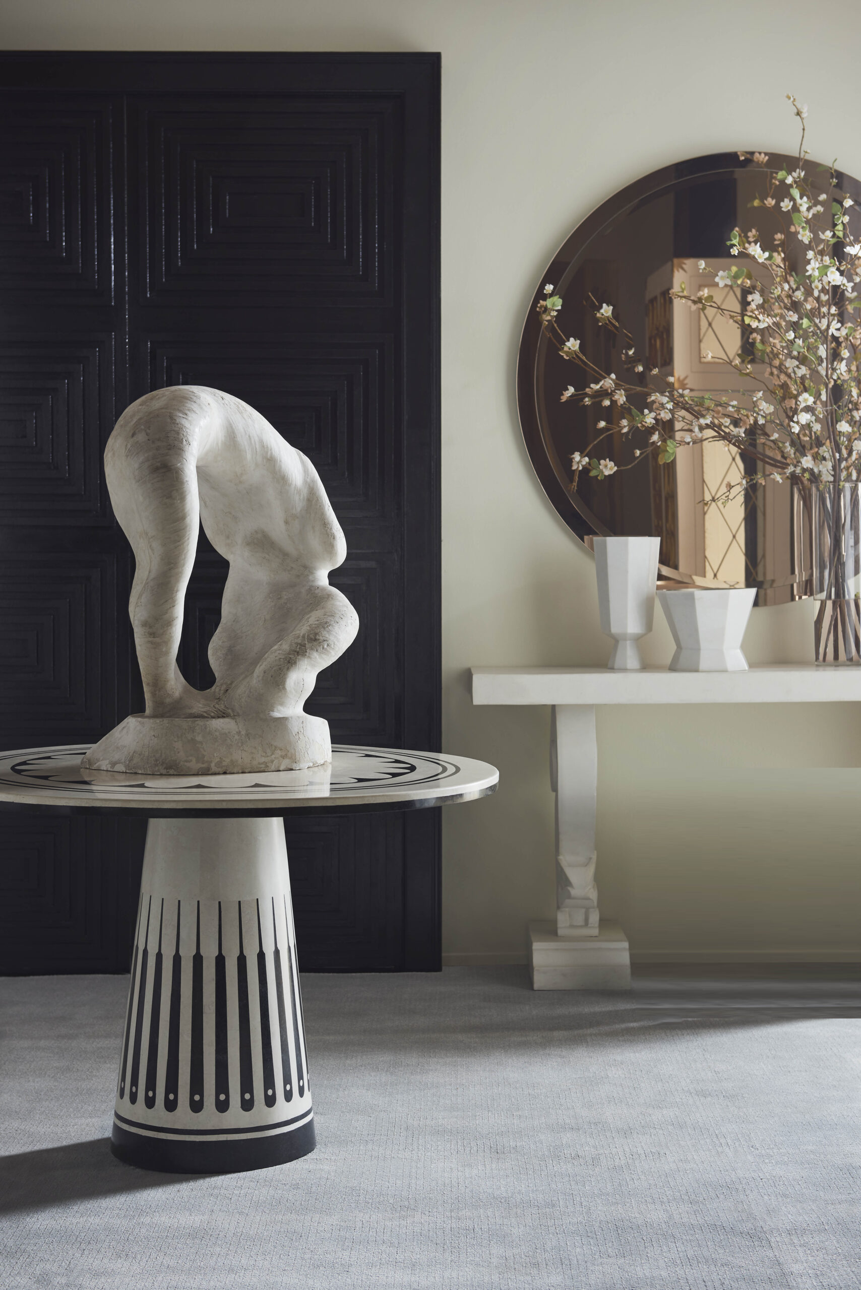 Home » Dining Room » 44″ Round Black & White Stone Inlaid Center Table