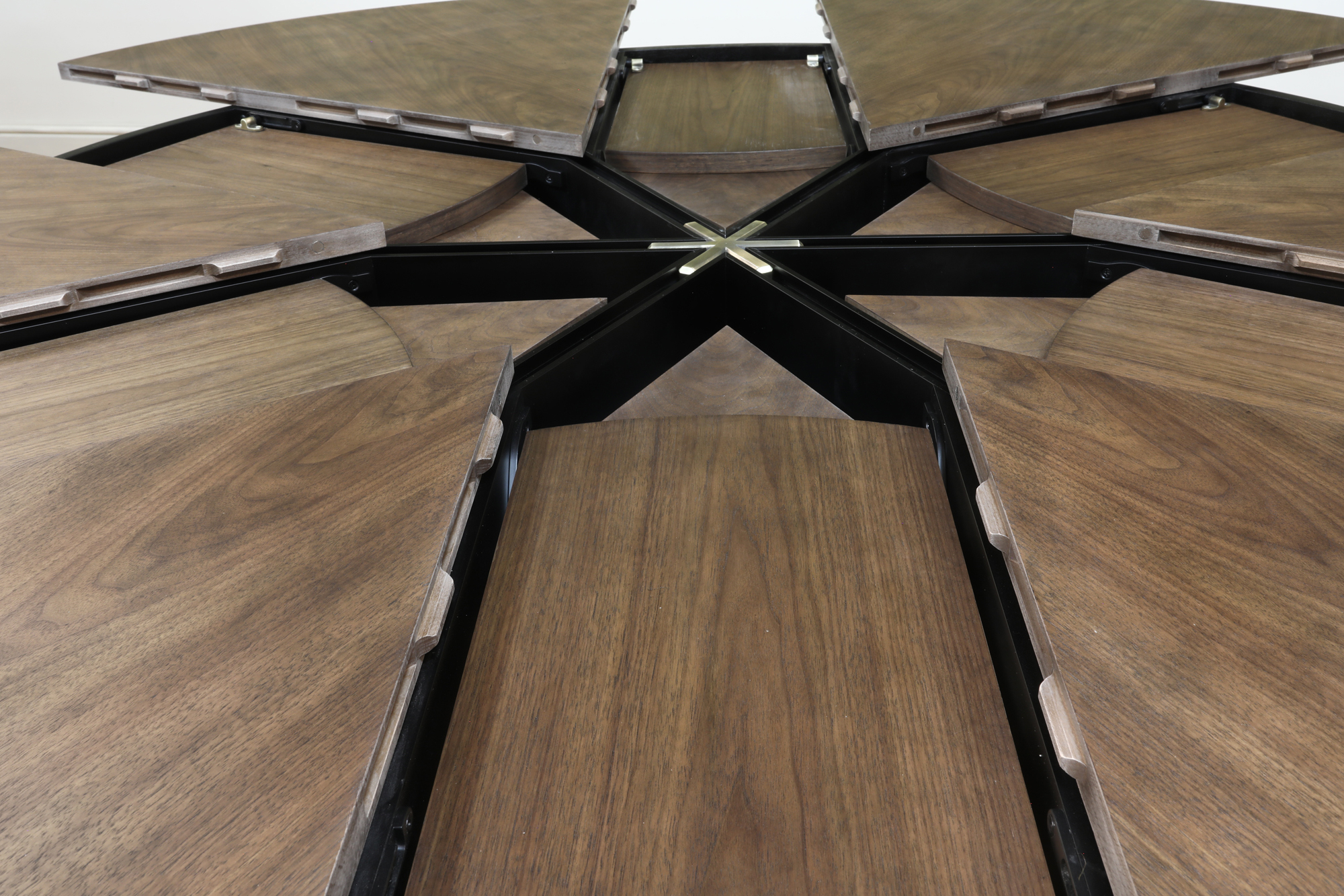 66" - 86" Modern Walnut Jupe Dining Table with Brass Accents
