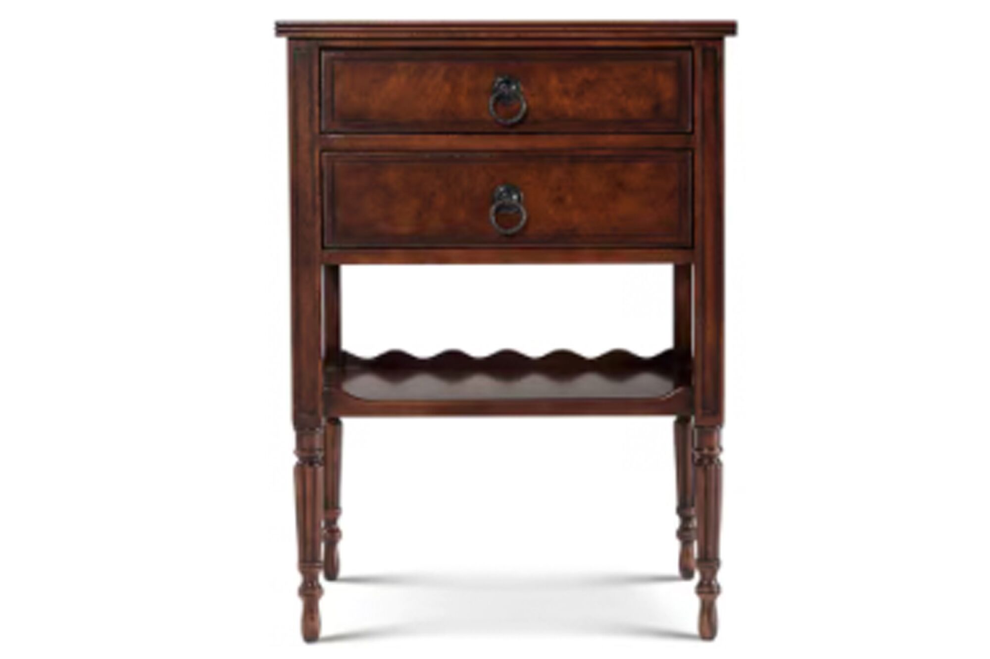 A cerejeira veneered and Khaya table, the rectangular crossbanded and reeded edge top above two graduated drawers and a serpentine three quarter galleried undertier, on turned and reeded tapering legs with skittle feet. Inspired by a 19th century French original.