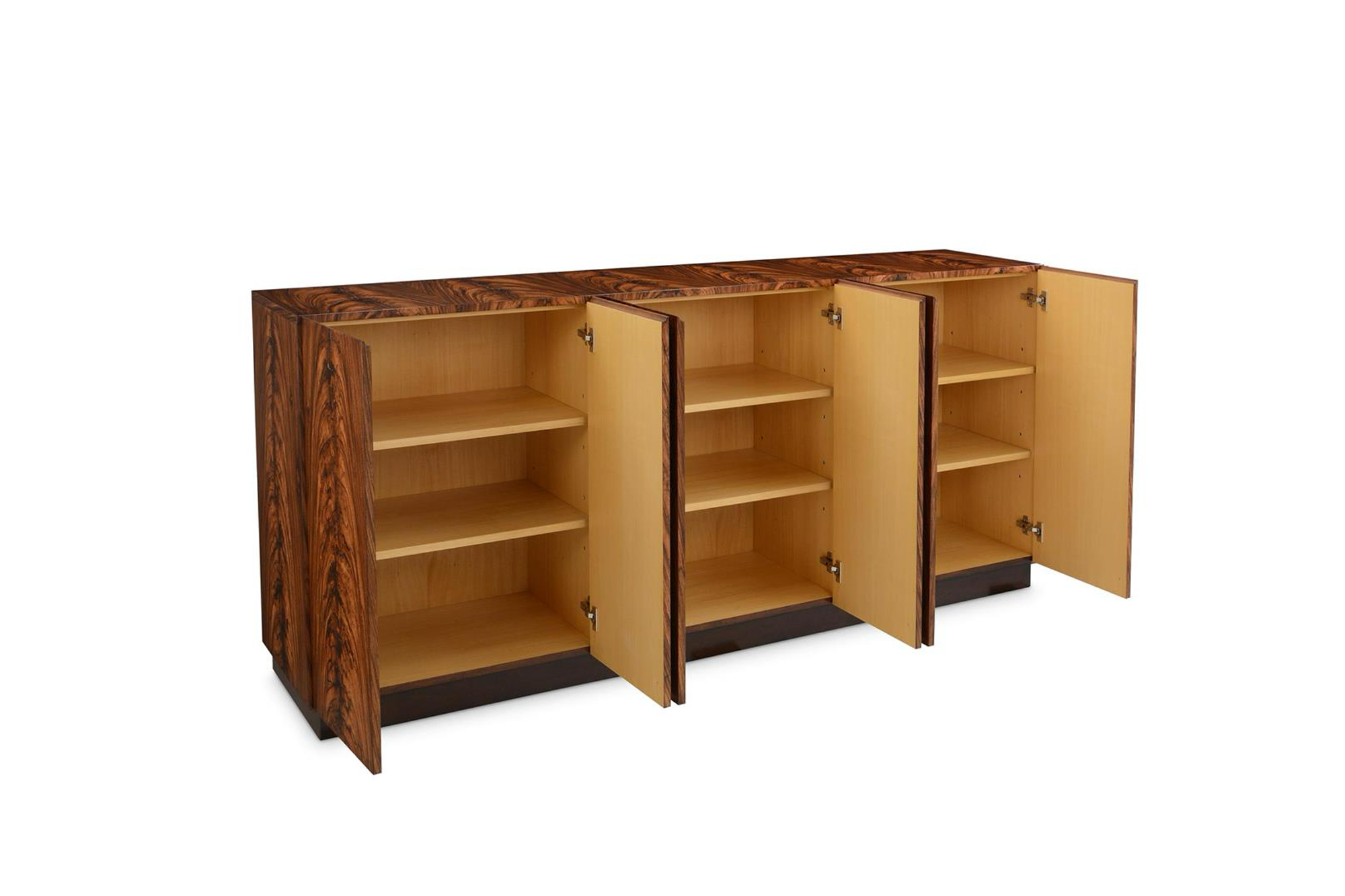 Credenza In Zebraki Wood With Six Doors And Juniper Walnut Plinth Base