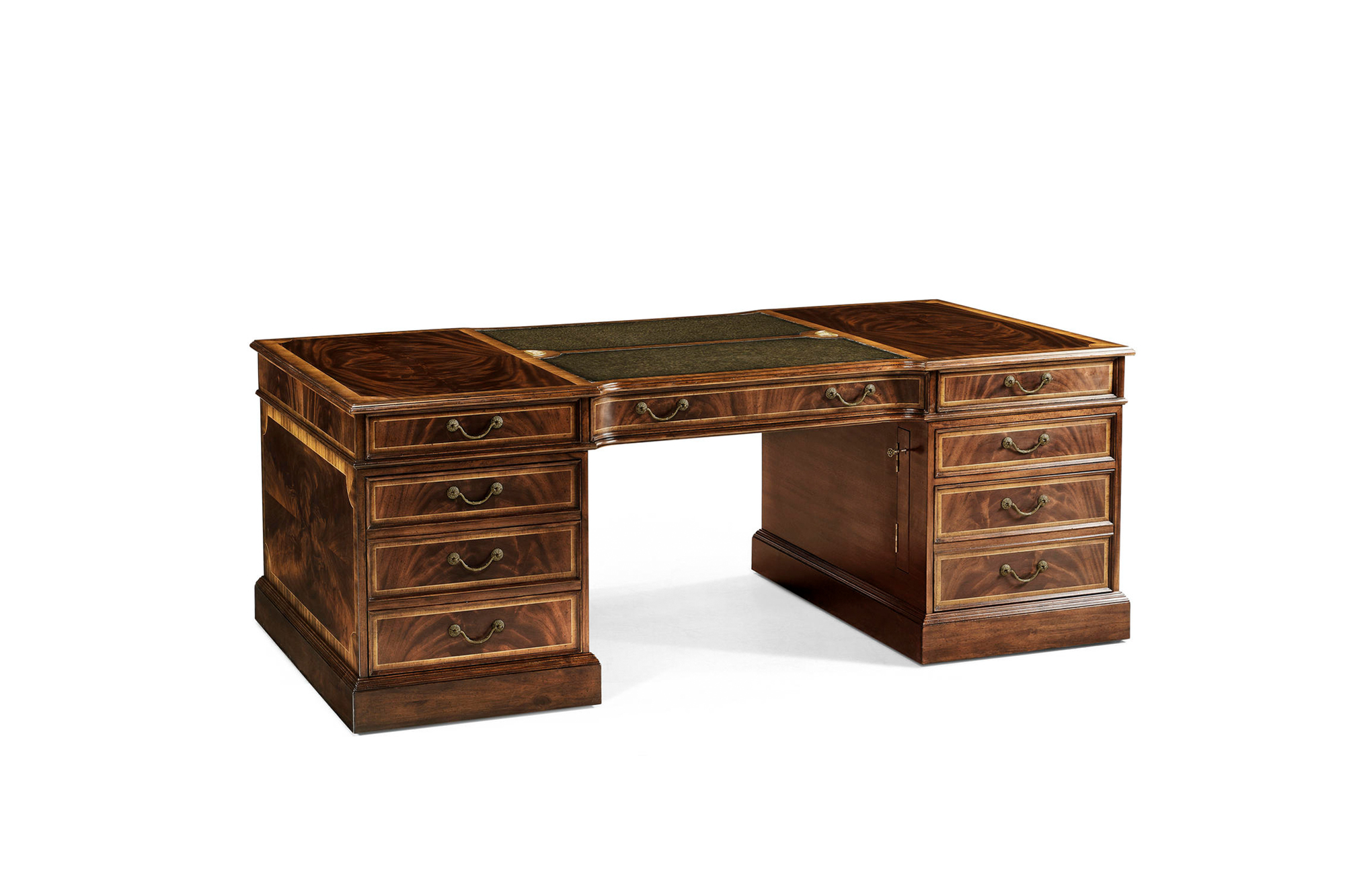 Home » Catalog » Crotch Mahogany Partners Desk With Leather Writing Surface And Storage