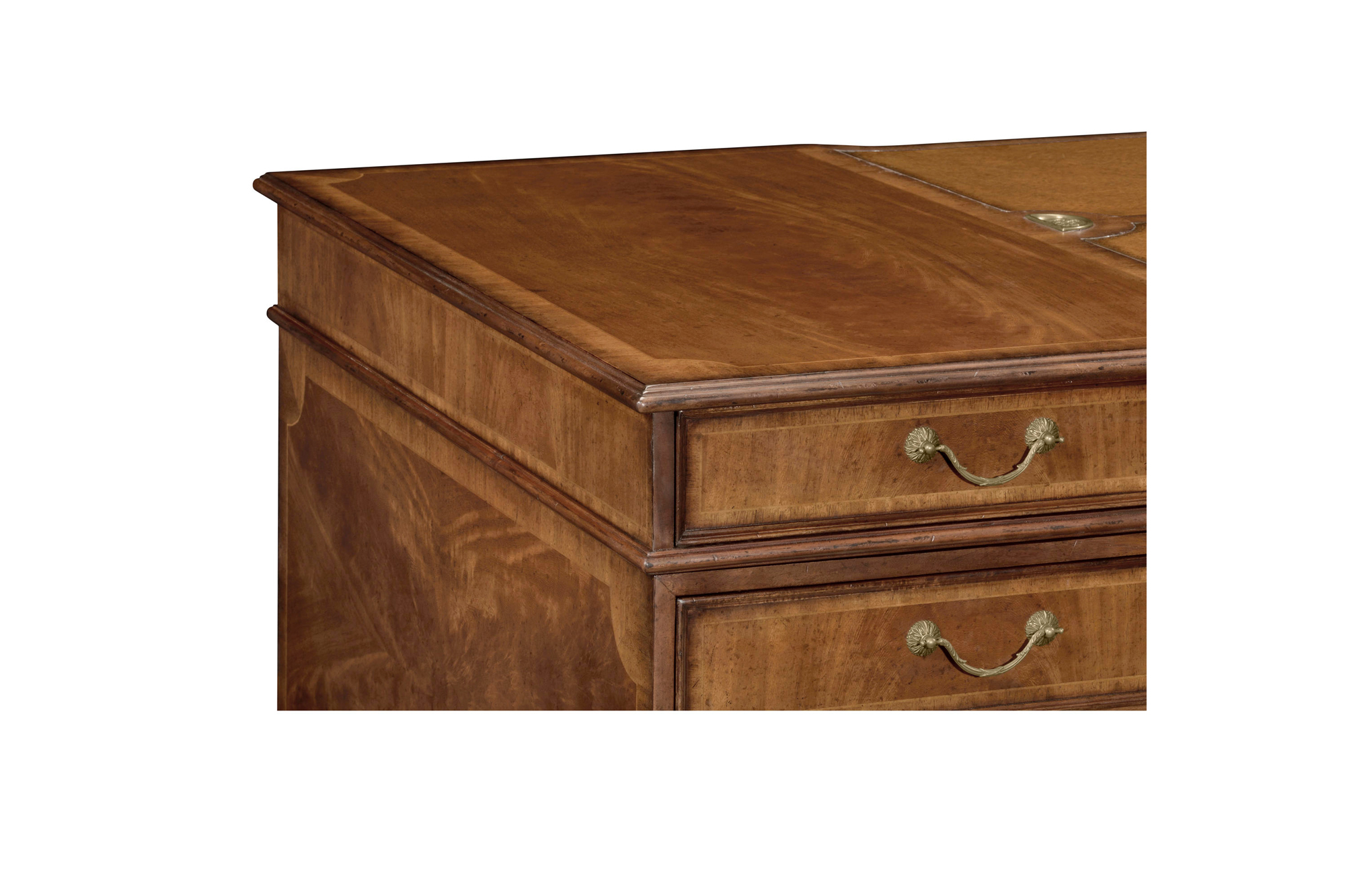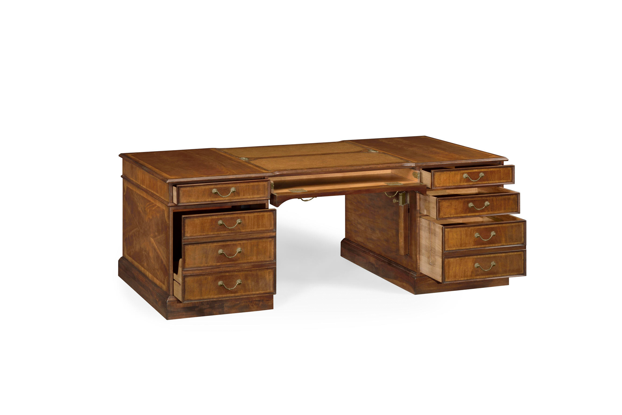 Home » Catalog » Crotch Walnut Partners Desk With Leather Writing Surface And Storage