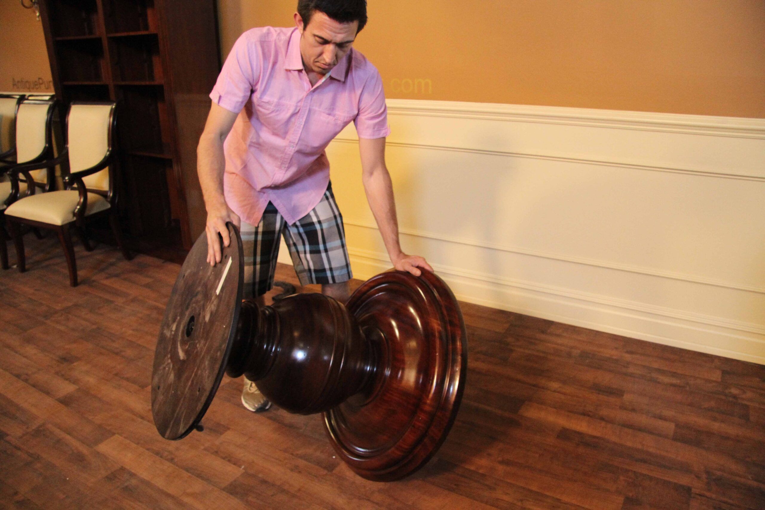 segmented top and fine inlays. Supported by a bold baluster pedestal, this