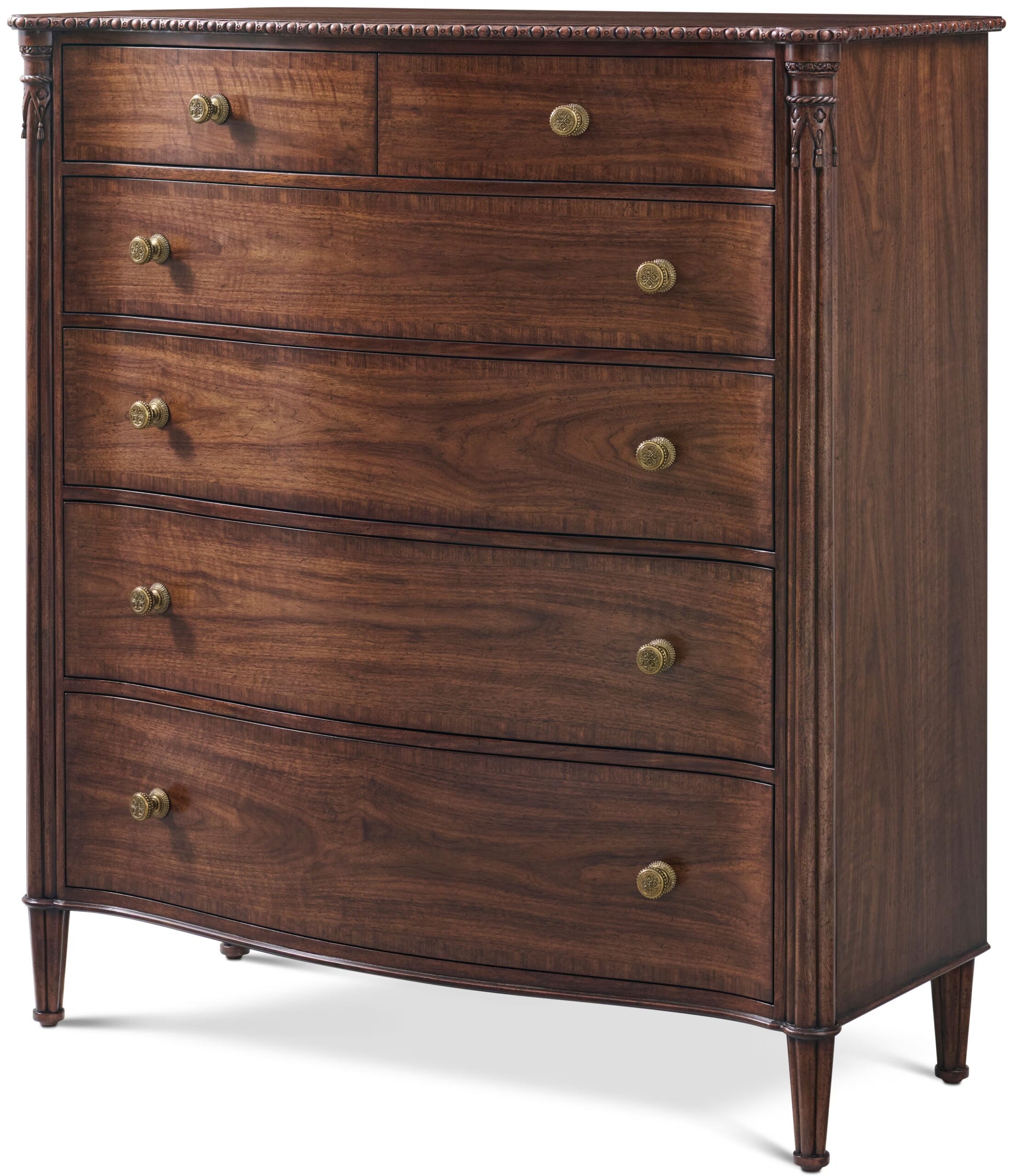 Home » Catalog » Figured walnut chest of drawers with six drawers and brass pulls