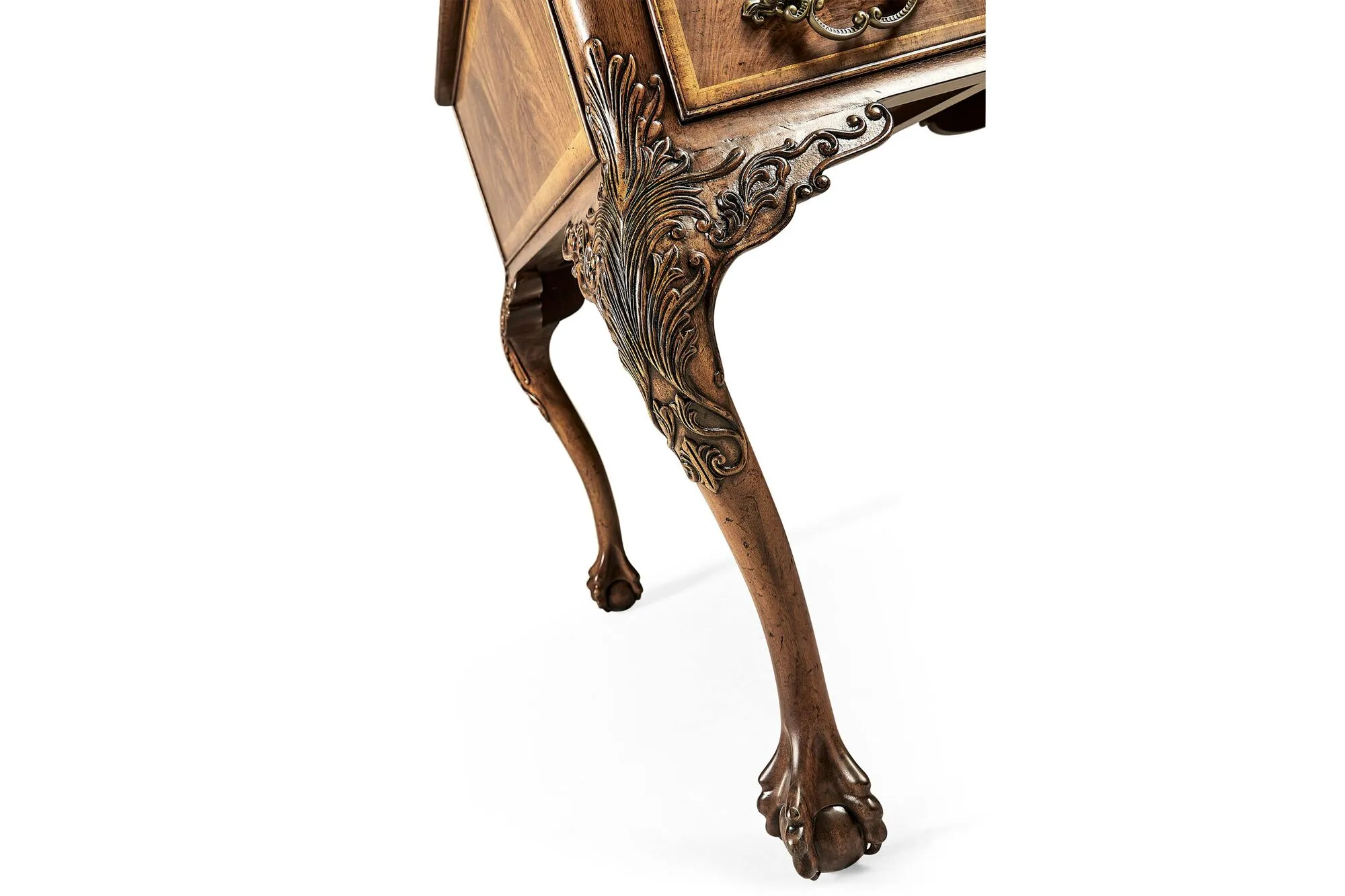 George II Style Walnut Desk With Leather Inset And Ball And Claw Feet