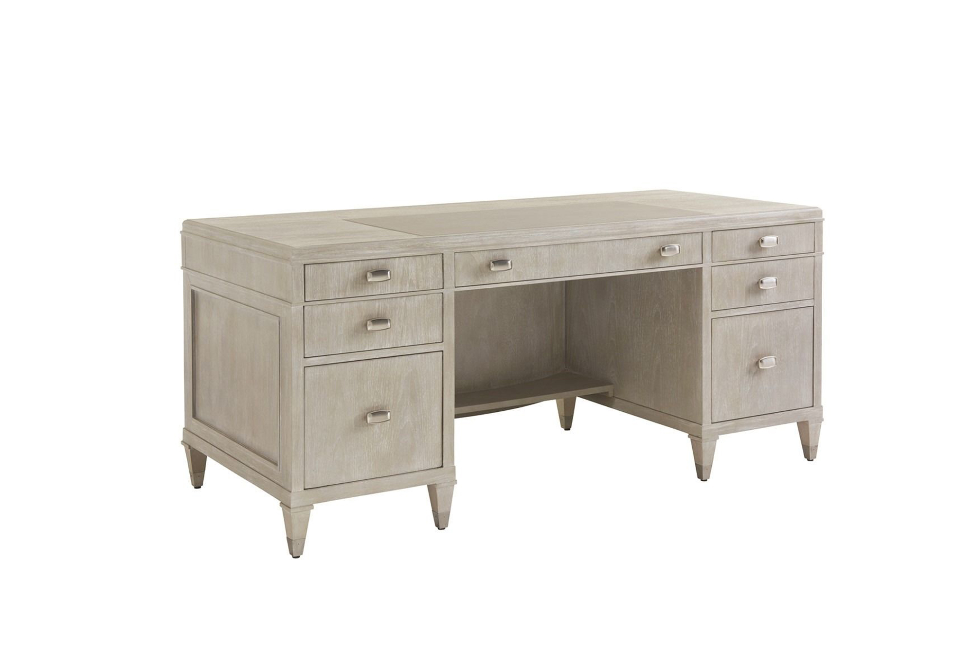 Grey Leather Top Executive Desk with Curved Privacy Panel, Spade Feet and Pewter Ferrules
