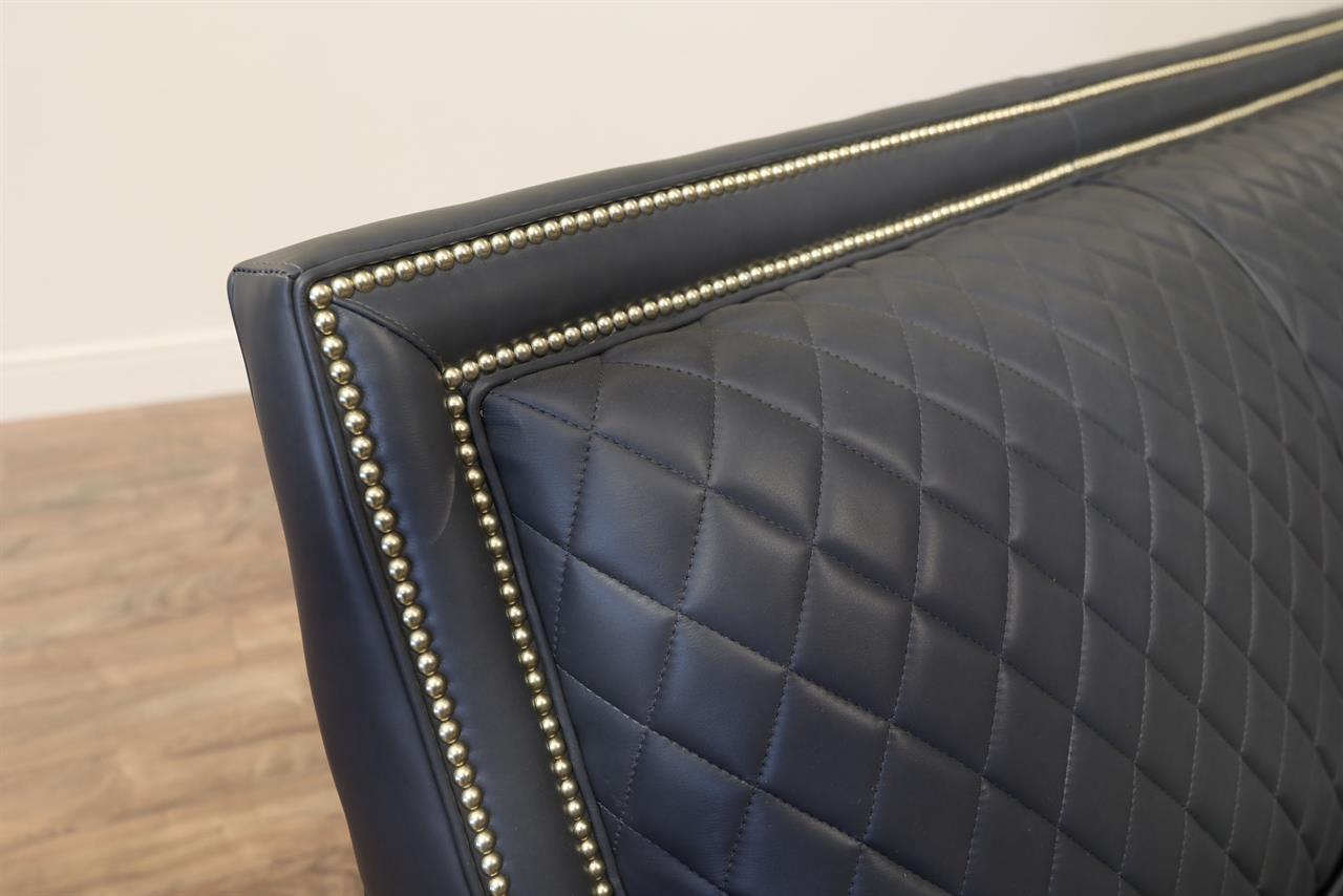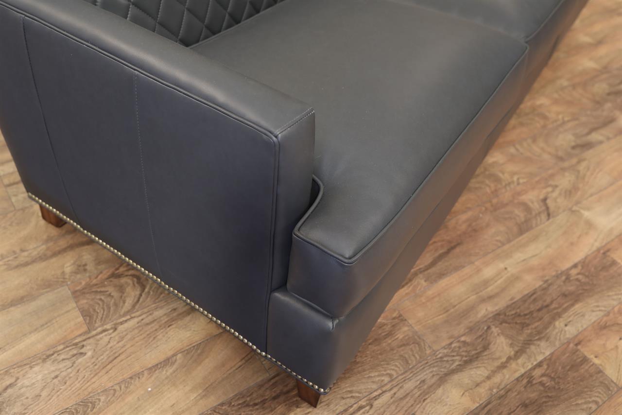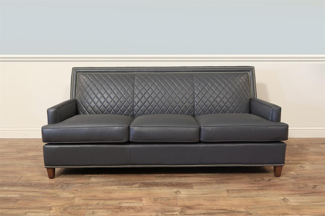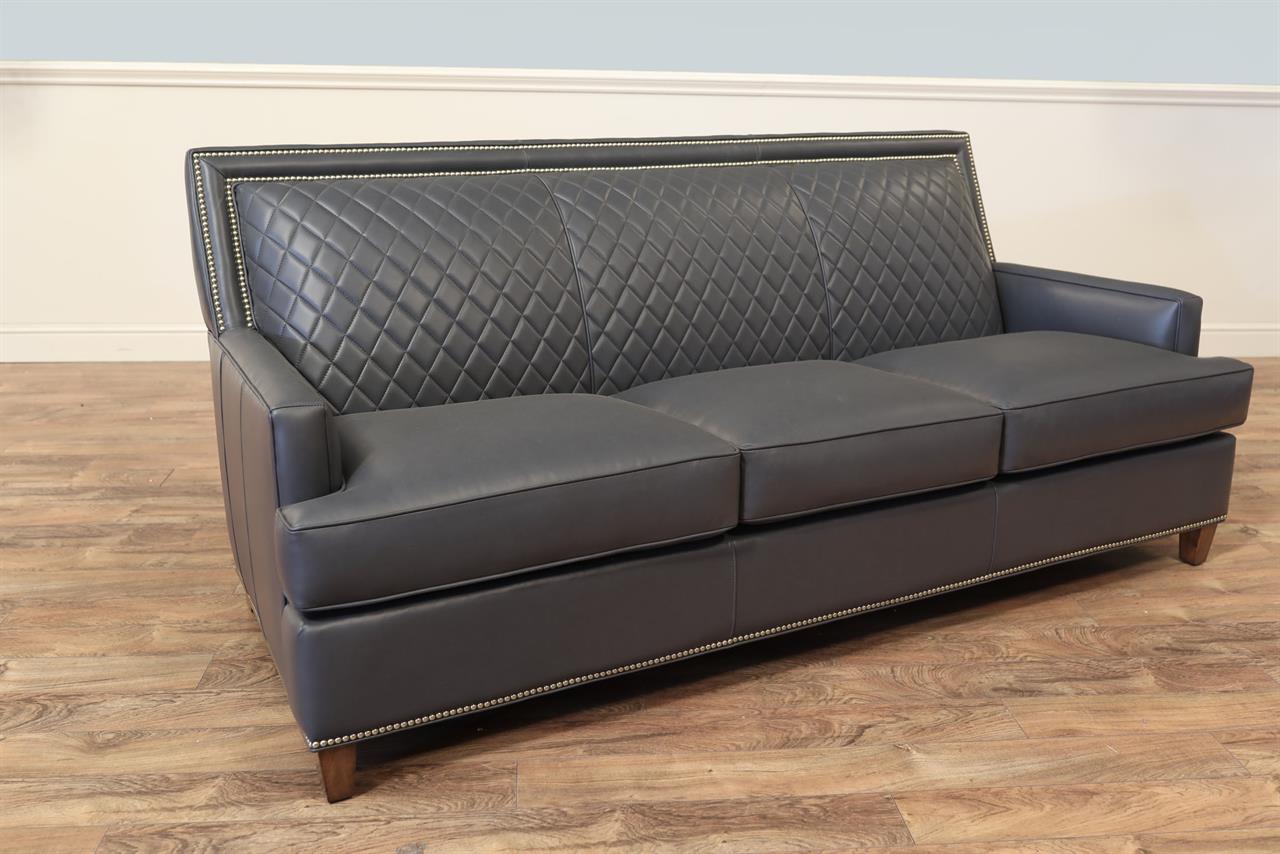 American Made Ocean Blue Leather Quilted Sofa with Denmark Finished Frame