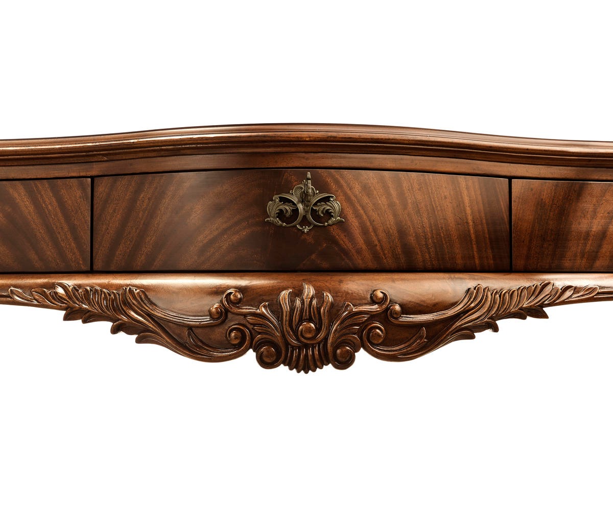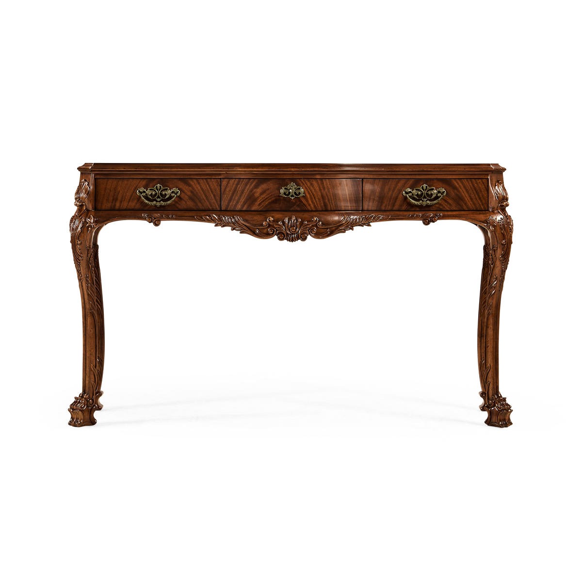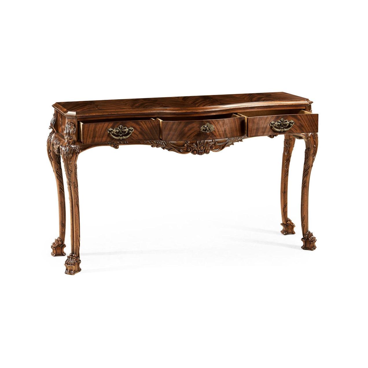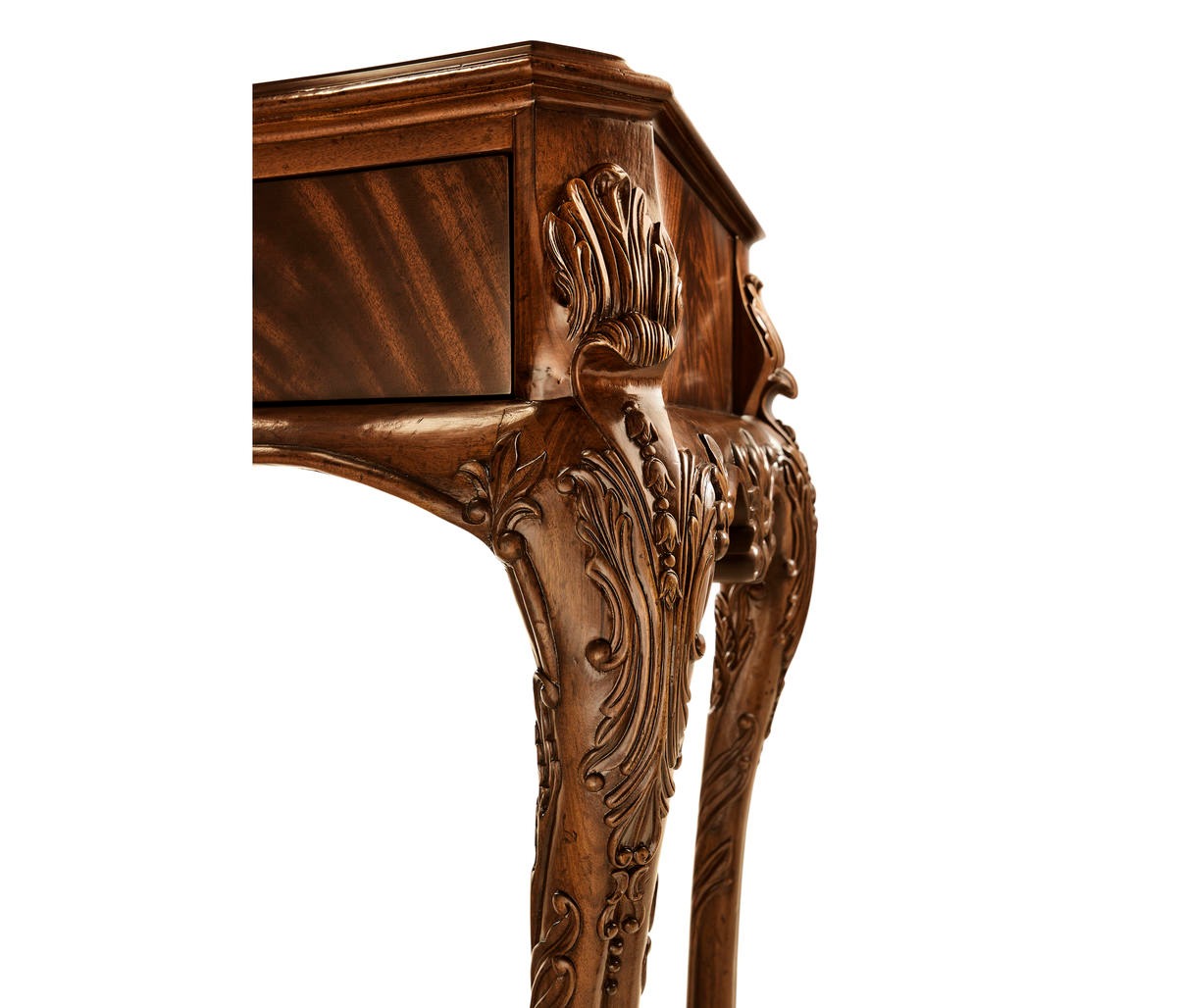 Rococo Mahogany Console With Carved Details and Cabriole Legs