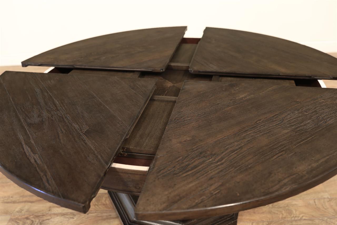 Home » Catalog » 59 to 74 inch round expanding dining table with self-storing leaves. Round pedestal dining table or kitchen table.