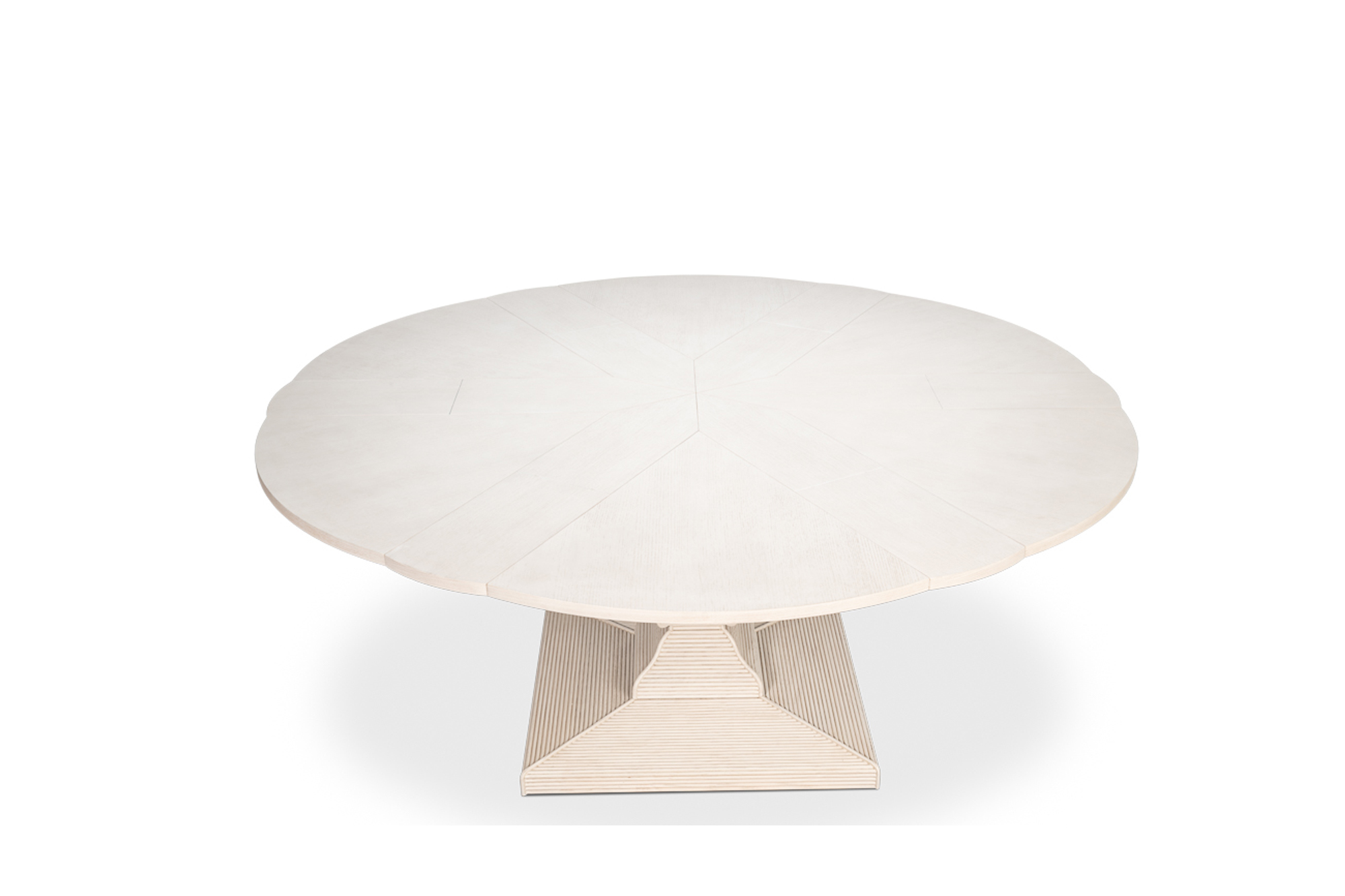 The Kelso Equestrian Jupe Table is a standout with the classically designed reeded and hand finished pedestal base, which makes it versatile enough to fit any design style. Featuring a self-storing expansion mechanism crafted from extruded aluminum , the top expands effortlessly, providing both smooth operation and simplified assembly.