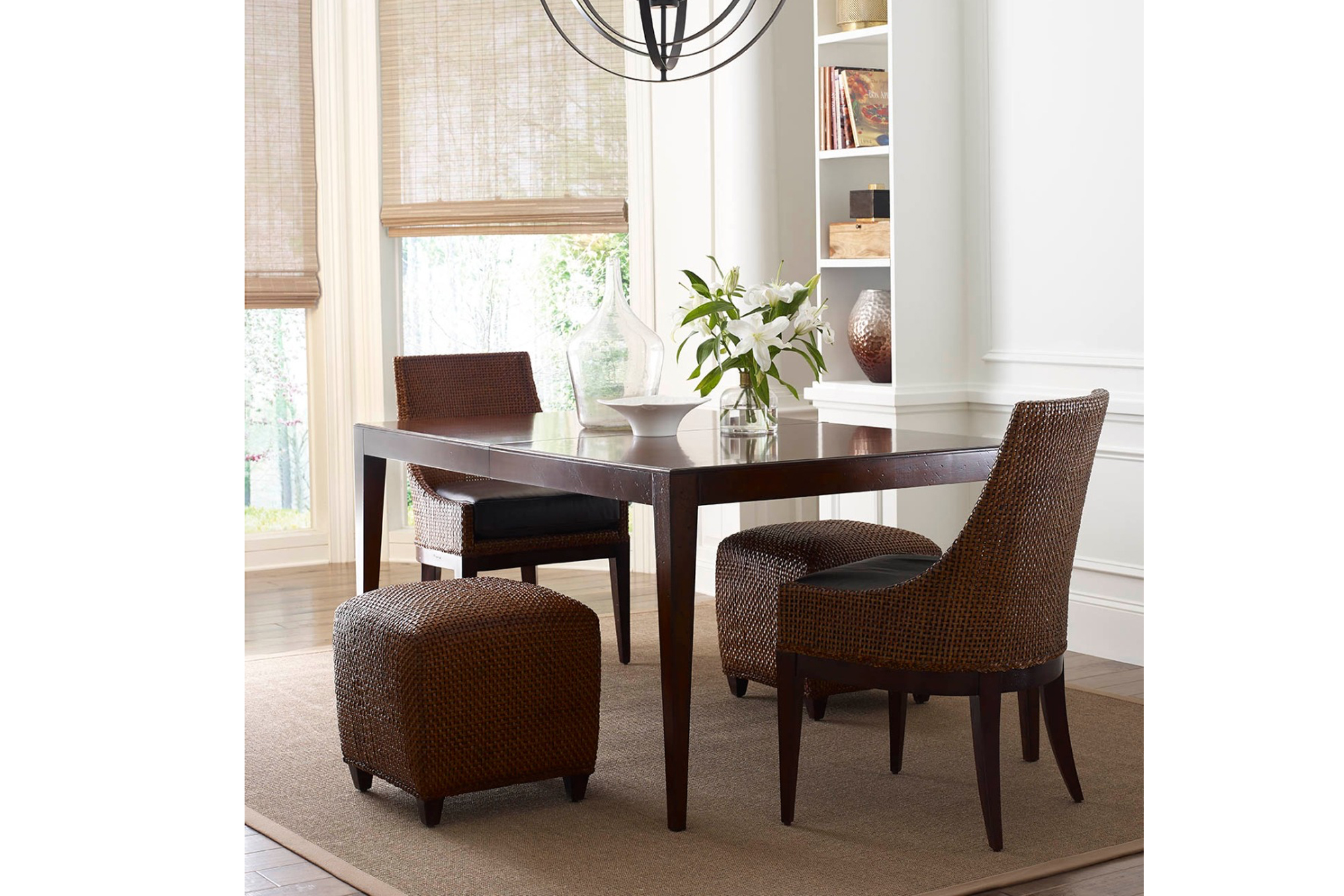 Home » Catalog » Leather Woven Back Chair With Upholstered Seat And Tapered Legs