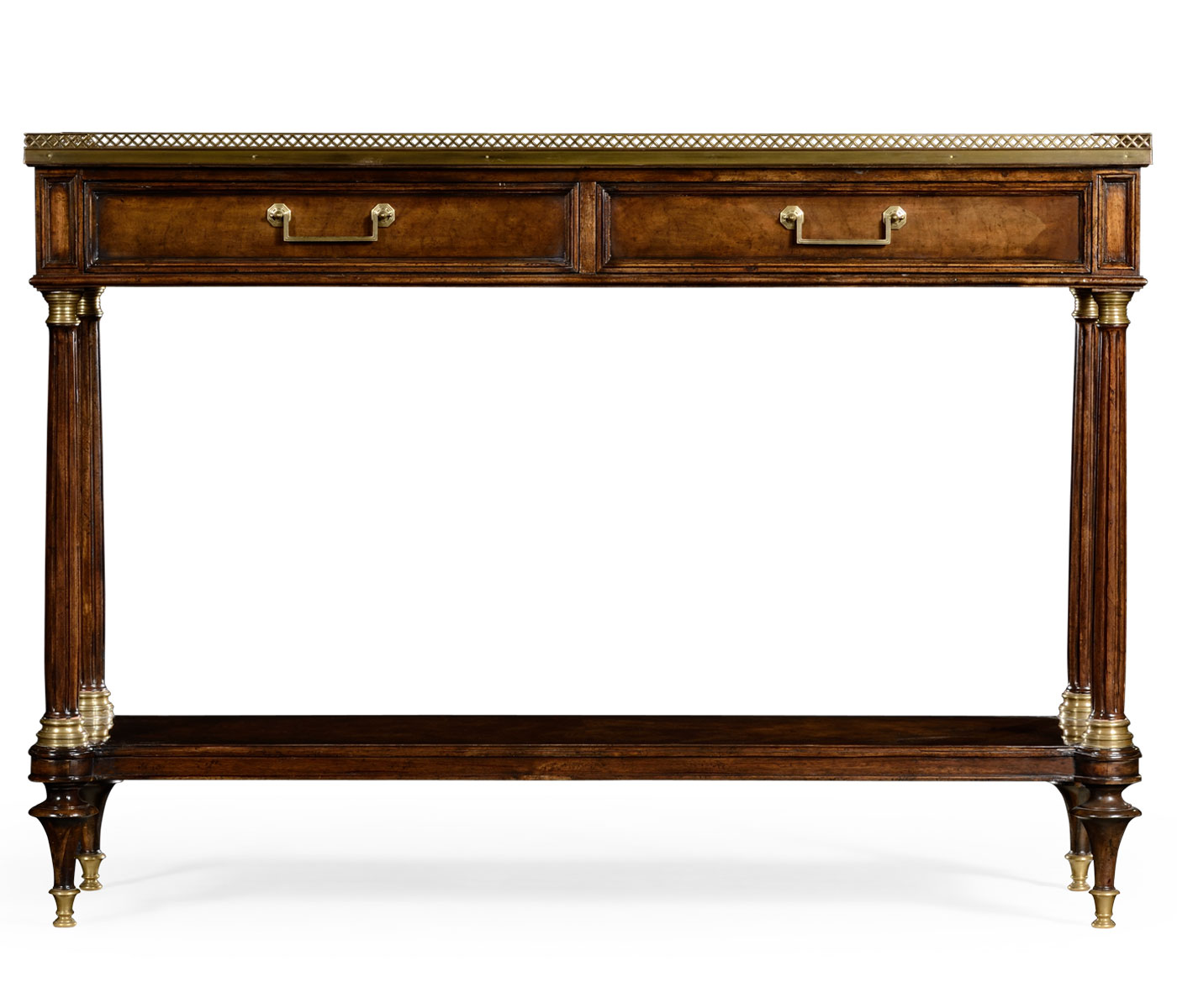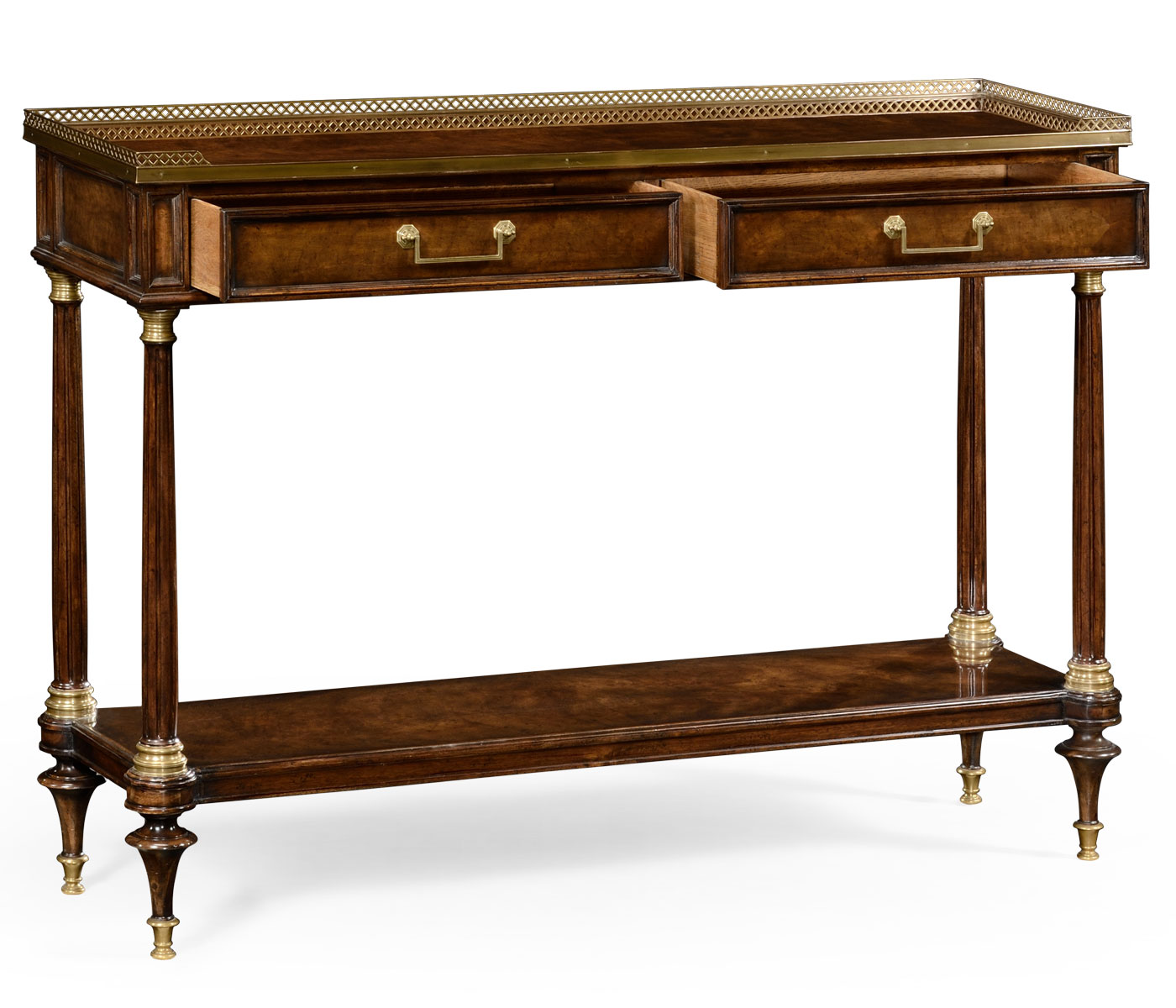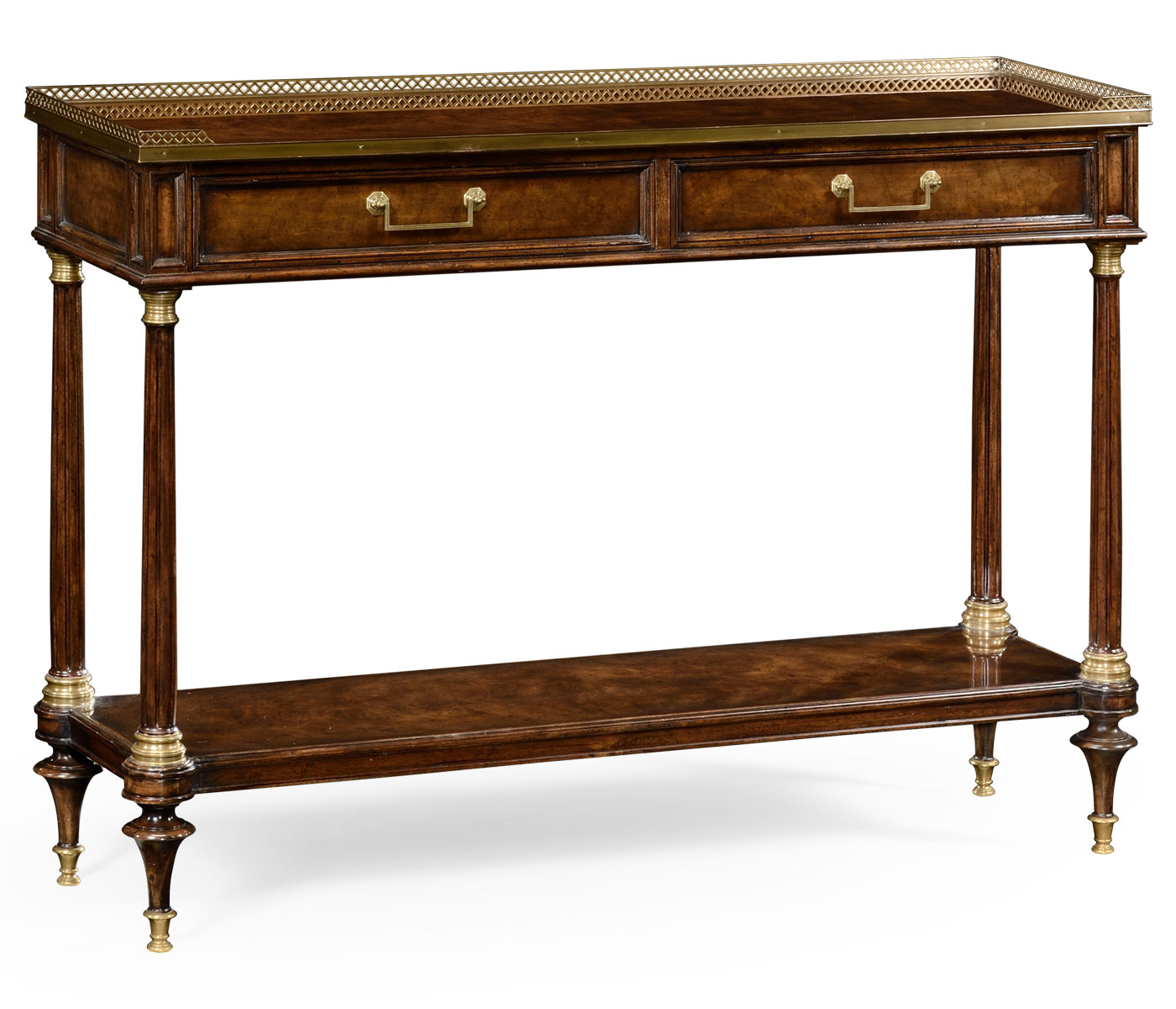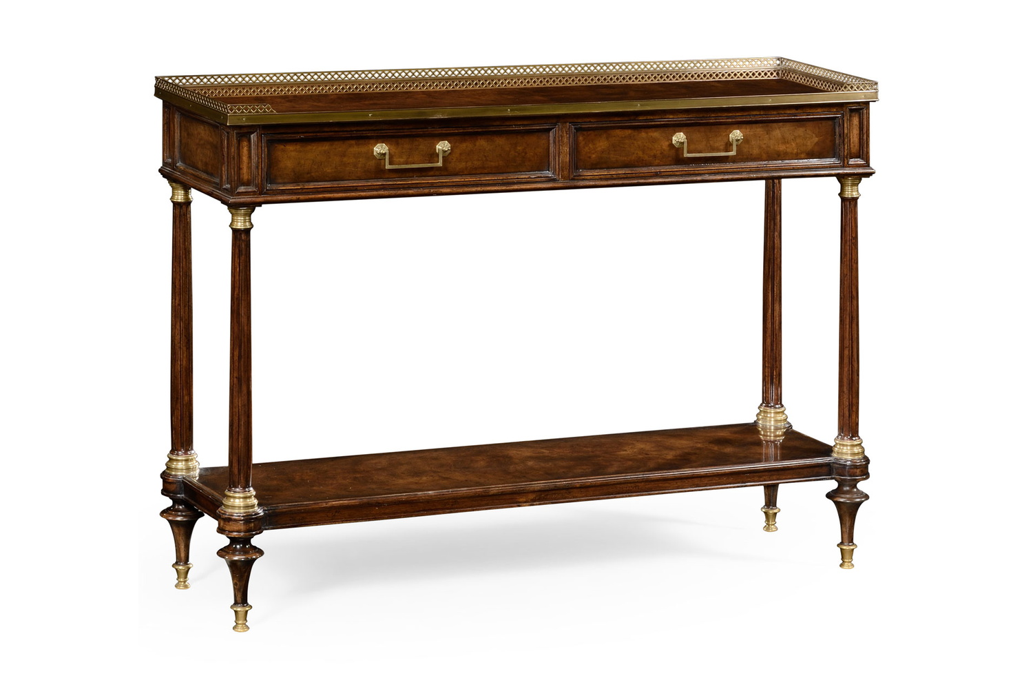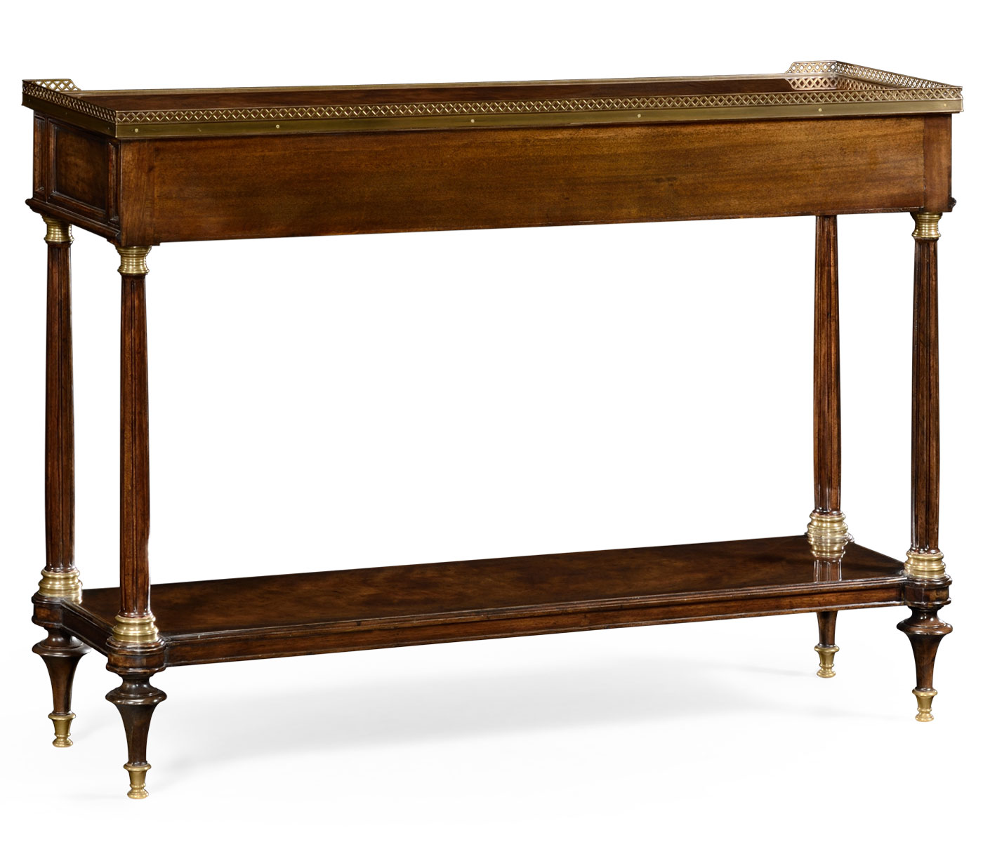 Mahogany Console With Brass Gallery, Two Drawers, Fluted Legs
