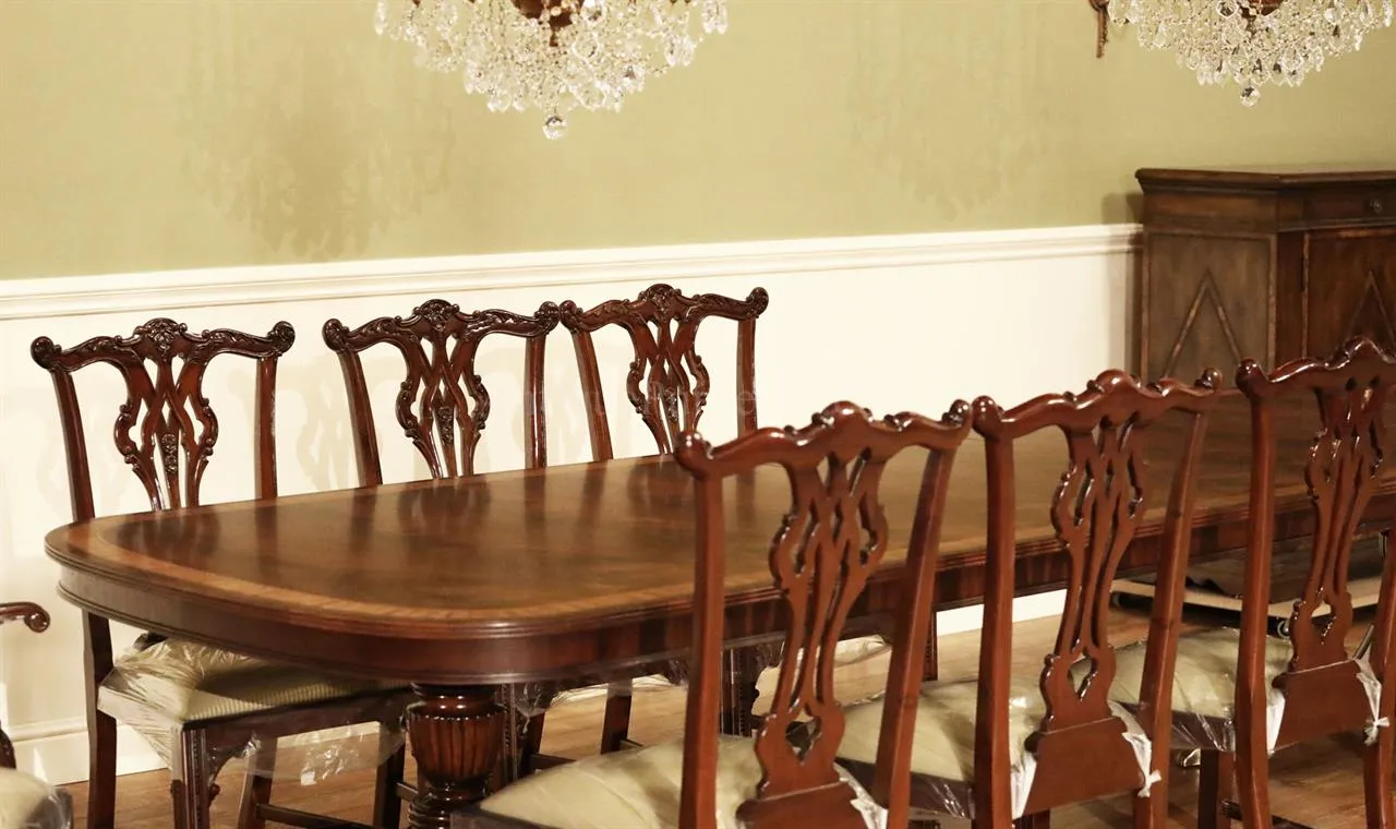 Home » Dining Room » Large dining table seats 12 to 14. Fine high end mahogany dining table fitted with an apron or table skirt