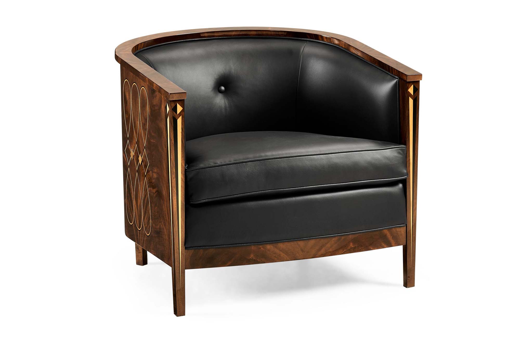 Home » Catalog » Mahogany Tub Chair with Black Leather and Geometric Inlay