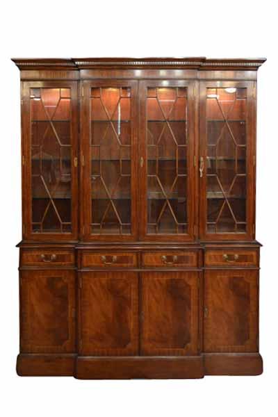 Home » Catalog » 4 door high end china cabinet. Straight molded crown, mahogany banded door panels