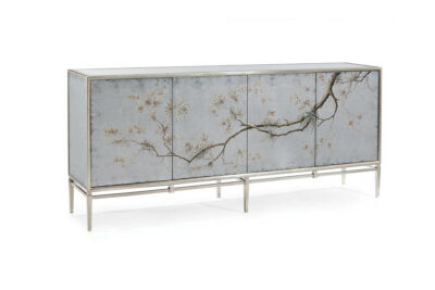 Reverse Glass Painted Branch and Leaves Sideboard