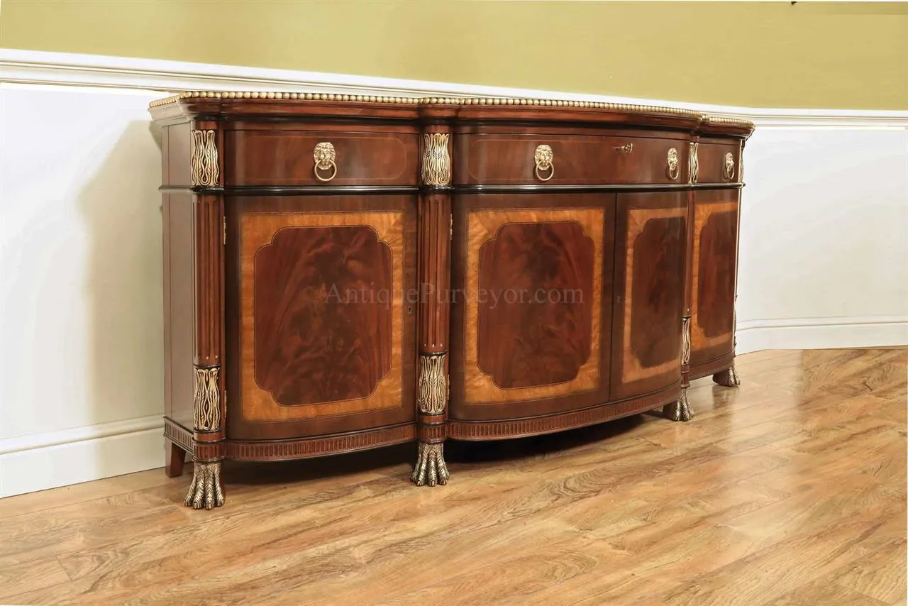 Home » Dining Room » EJ Victor luxurious regency style mahogany sideboard with lion paw feet and bow front. Solid cabinet