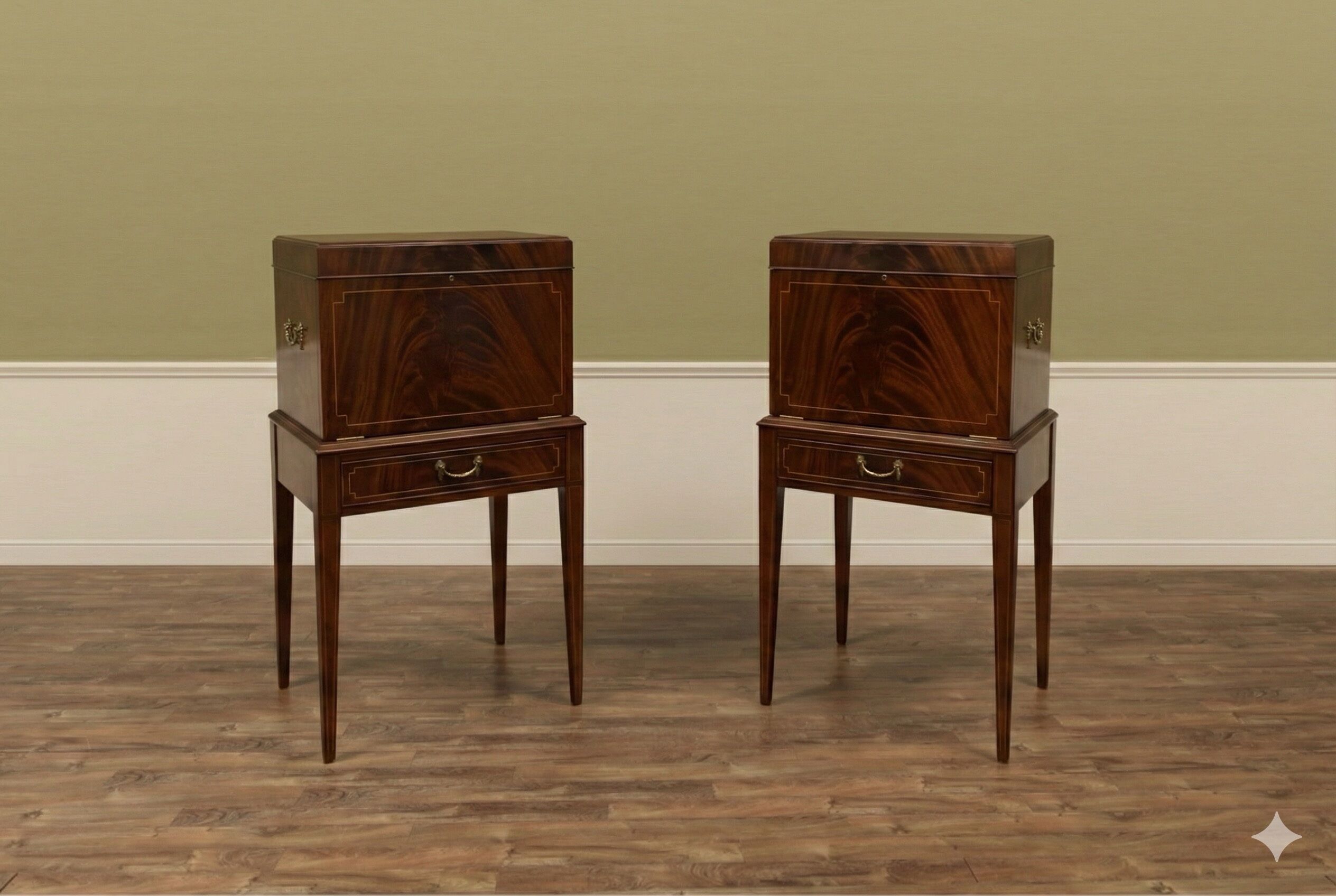 Home » Dining Room » Mahogany silver chest, flatware cabinet, Hepplewhite antique reproduction