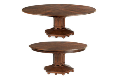 Round shapes are in favor and multiple place-setting configurations are often an important consideration when shopping for a table. Our “Custom Fit Classics” collection focuses on round dining tables and round to oval tables with extensions and they will help serve you on a regular day or any given holiday when you are entertaining guests. Trick….you can browse the entire custom fit classics collection on our website by searching CFC in the search field. Custom table pads are available so you can protect your table during those times.