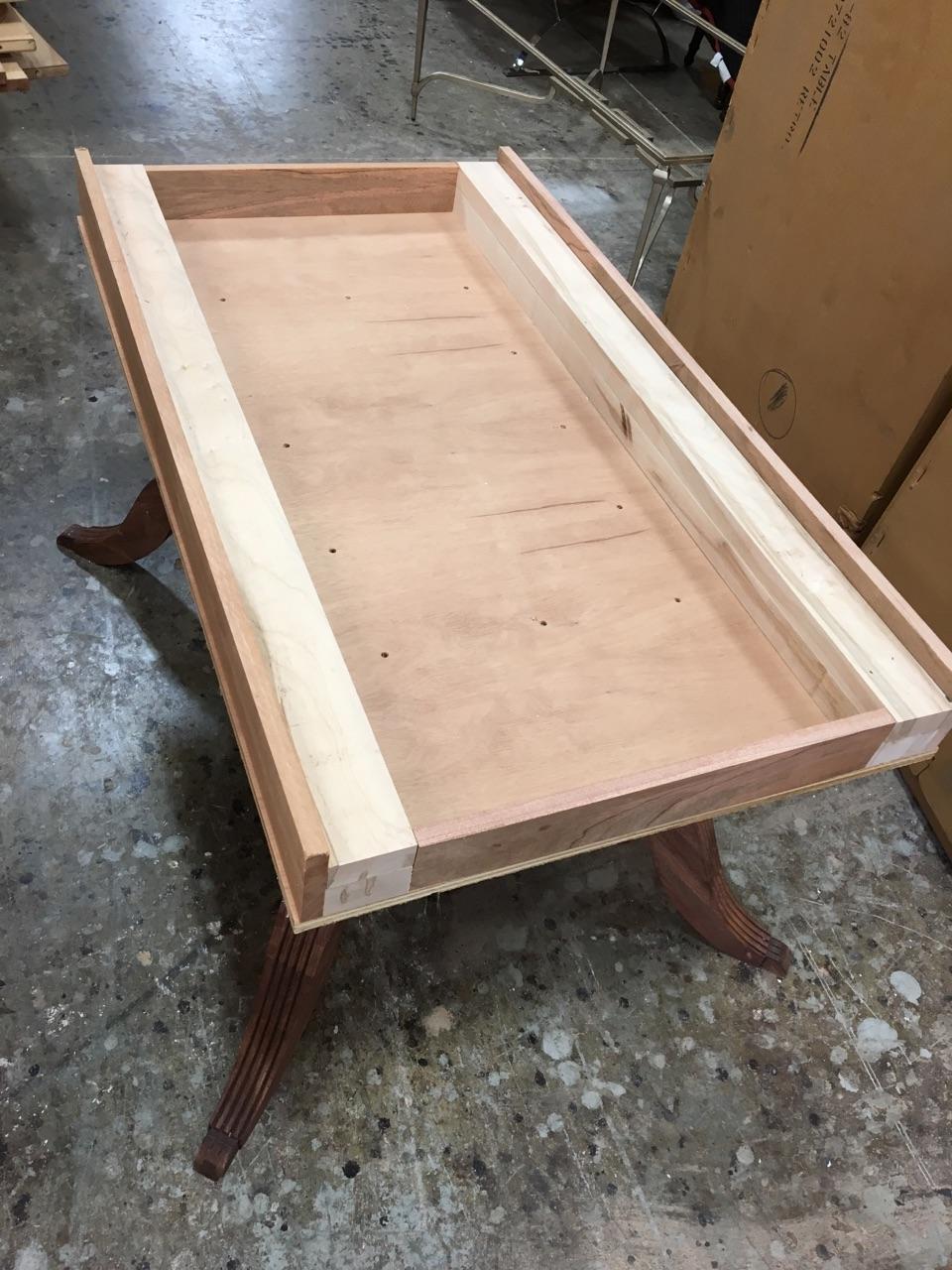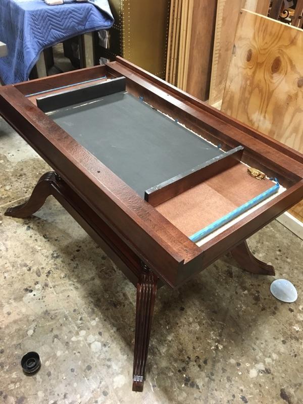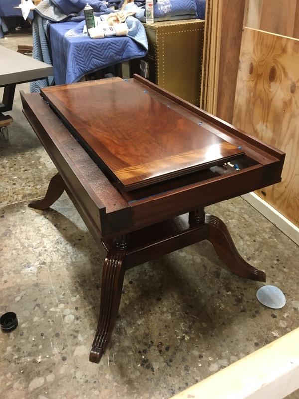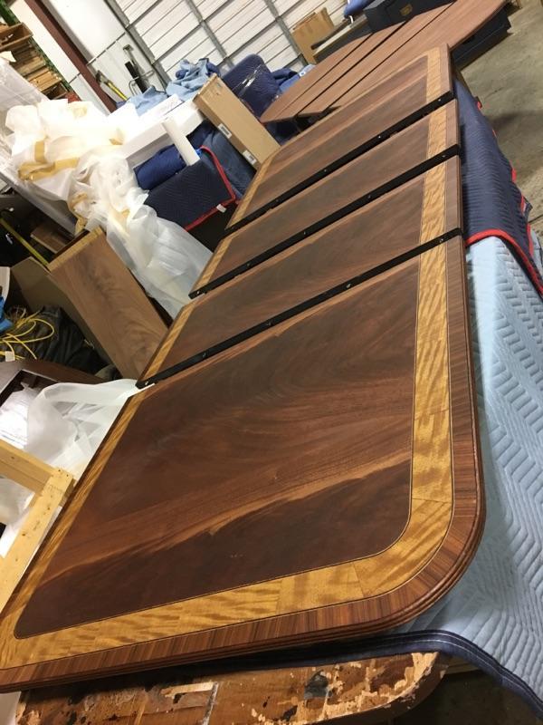 American made custom mahogany dining table with self storing leaves
