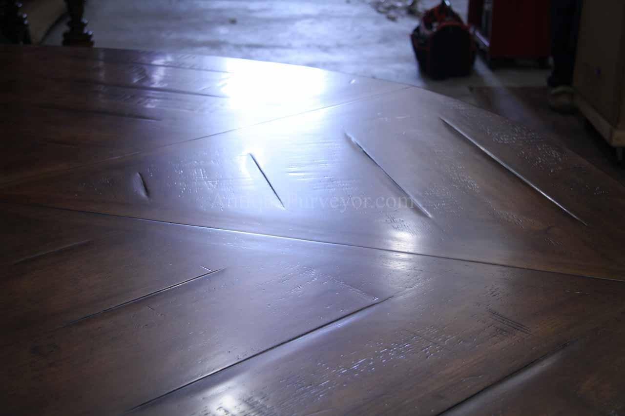The combination of walnut construction and the radial expansion system results in a mechanically versatile dining table suited for dining rooms where flexible seating capacity is required while maintaining the symmetry and visual balance of a round table form.