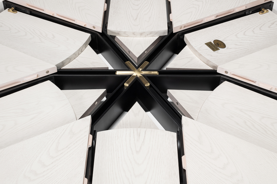 Home » Catalog » Casual Jupe table, Expandable round dining table, seats 6 to 10 people with self-storing leaves or hidden leaves
