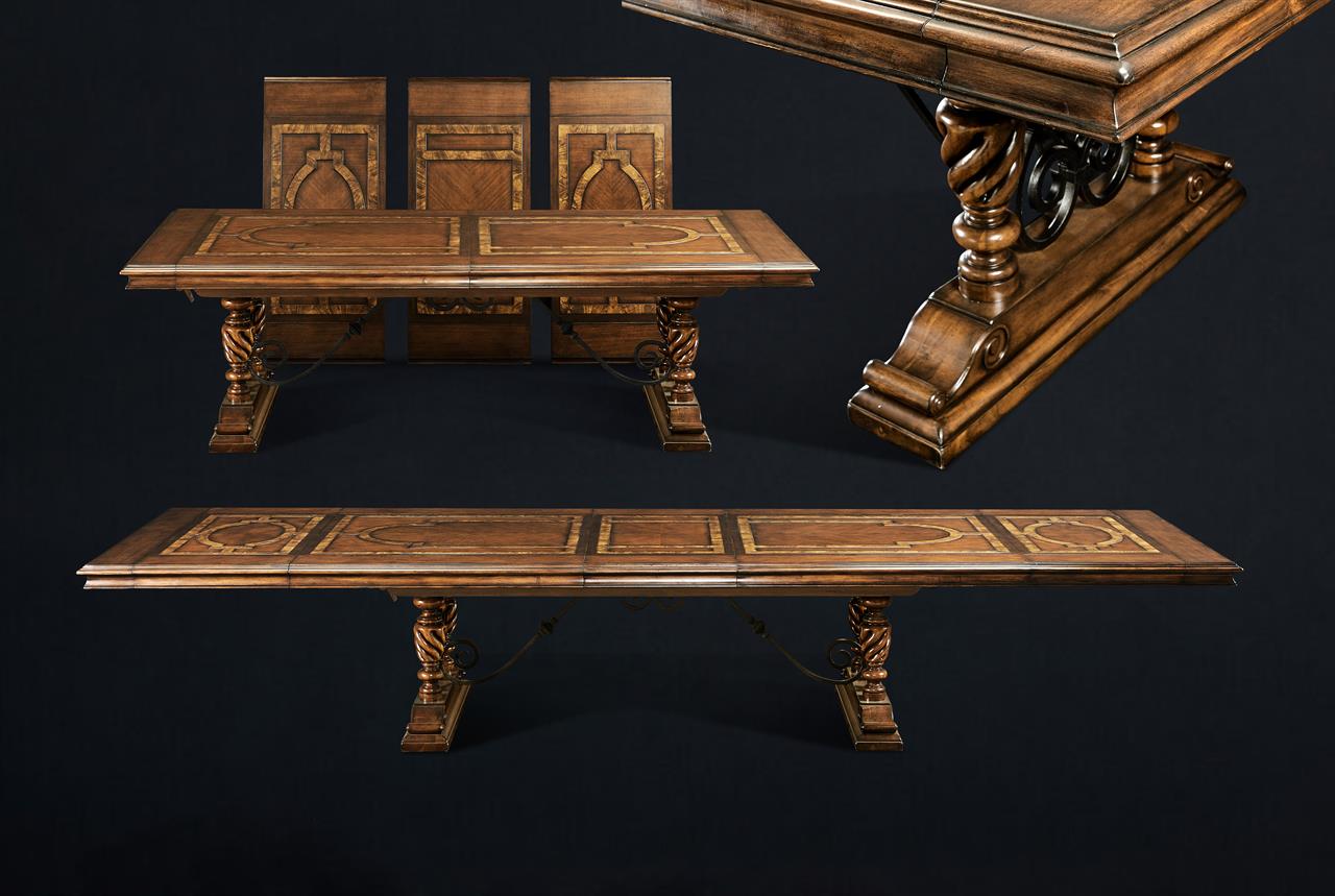 Home » Catalog » Extendable dining table seats 8, Tuscan or Mediterranean style dining table with 3 leaves. an AP Exclusive by AntiquePurveyor