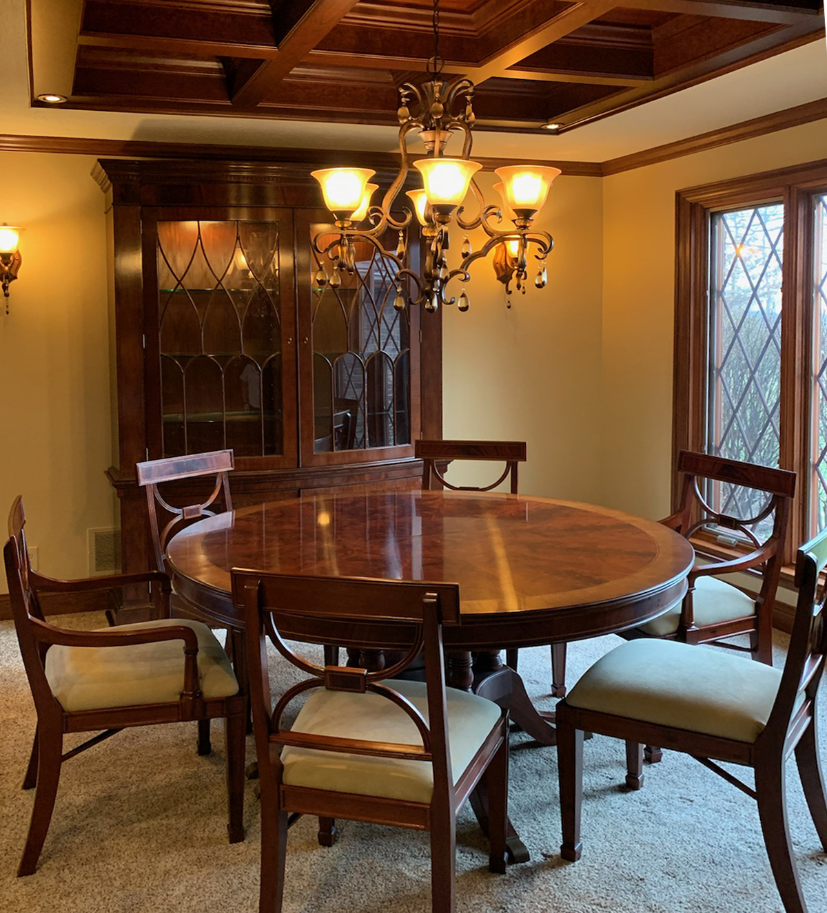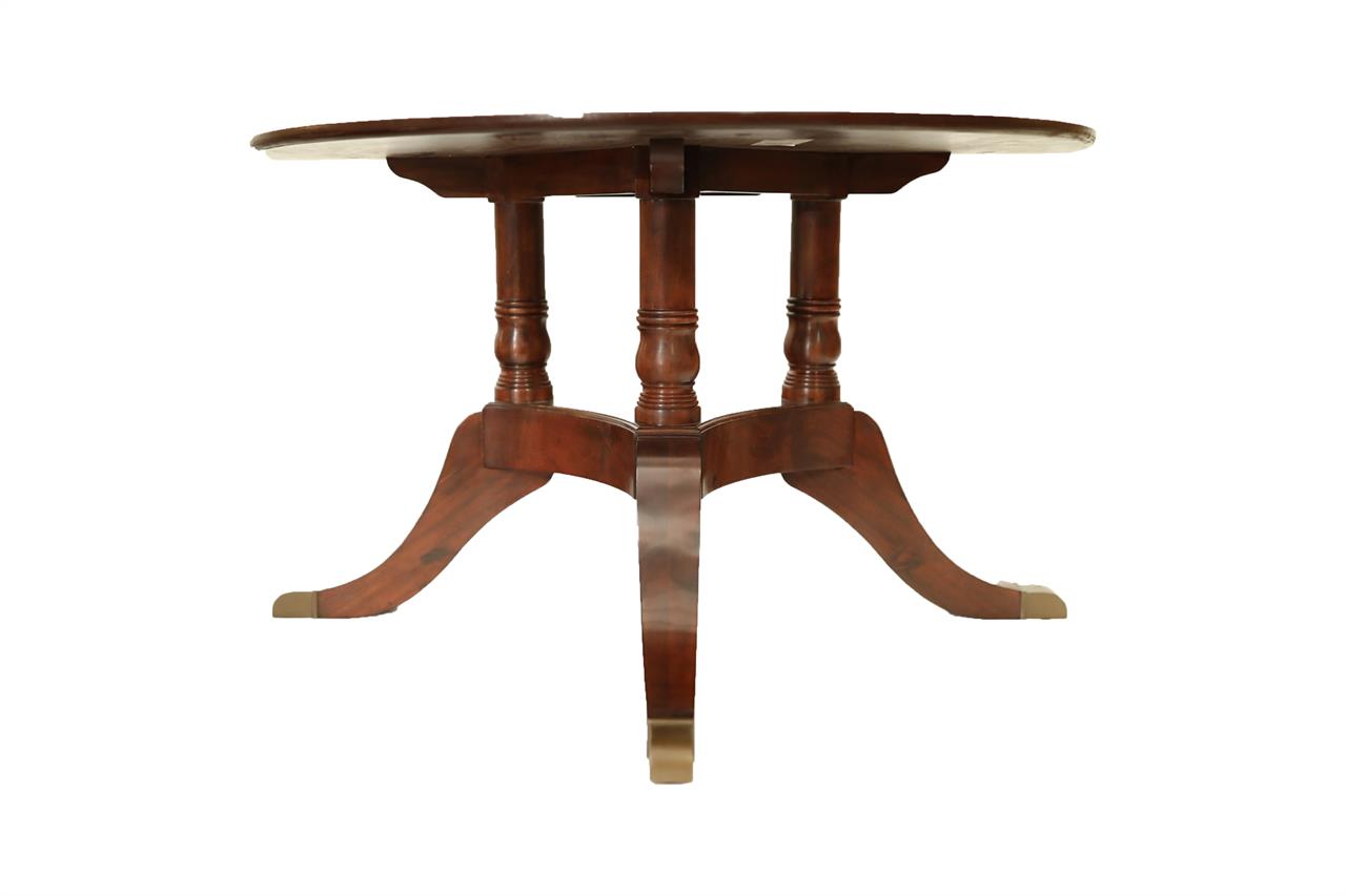 Home » Catalog » 60 inch Round Mahogany Dining Table Opens to 10 feet and seats 12 an AP Exclusive by AntiquePurveyor