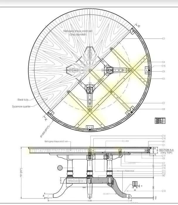Home » Dining Room » 84 round dining table on classic birdcage pedestal and custom brass feet, extra large one-piece round table