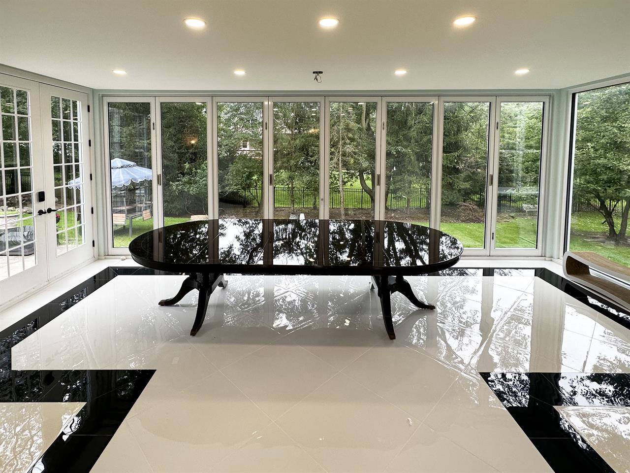 Home » Dining Room » 60″ Polished Dark Walnut Dining Table Opens to 10 Feet, Seats 12