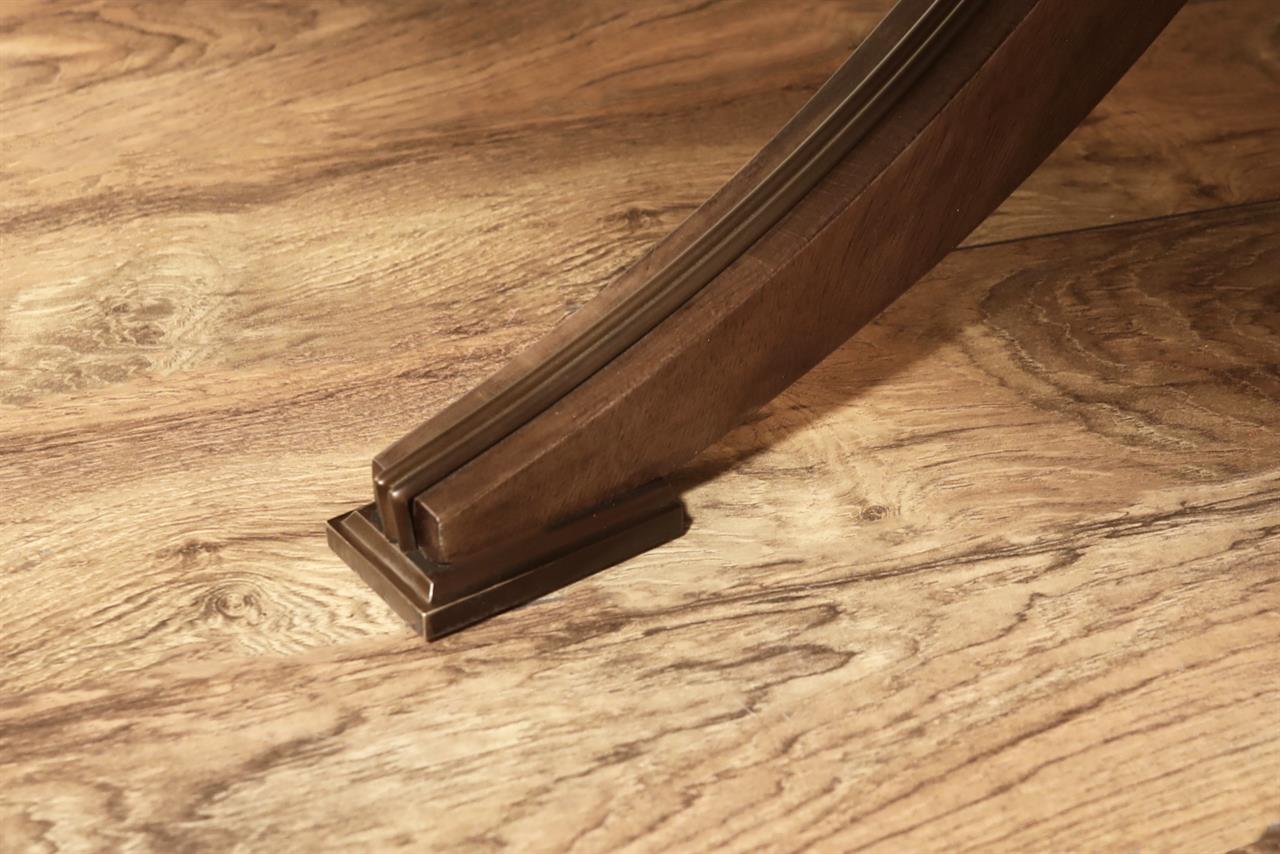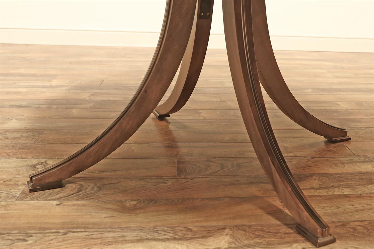 Home » Catalog » 72-Inch Blonde and Brass Inlaid Pedestal Table with Saber Legs