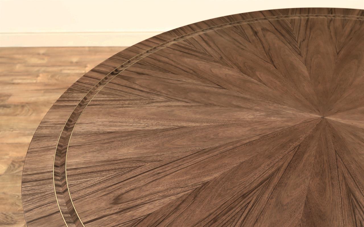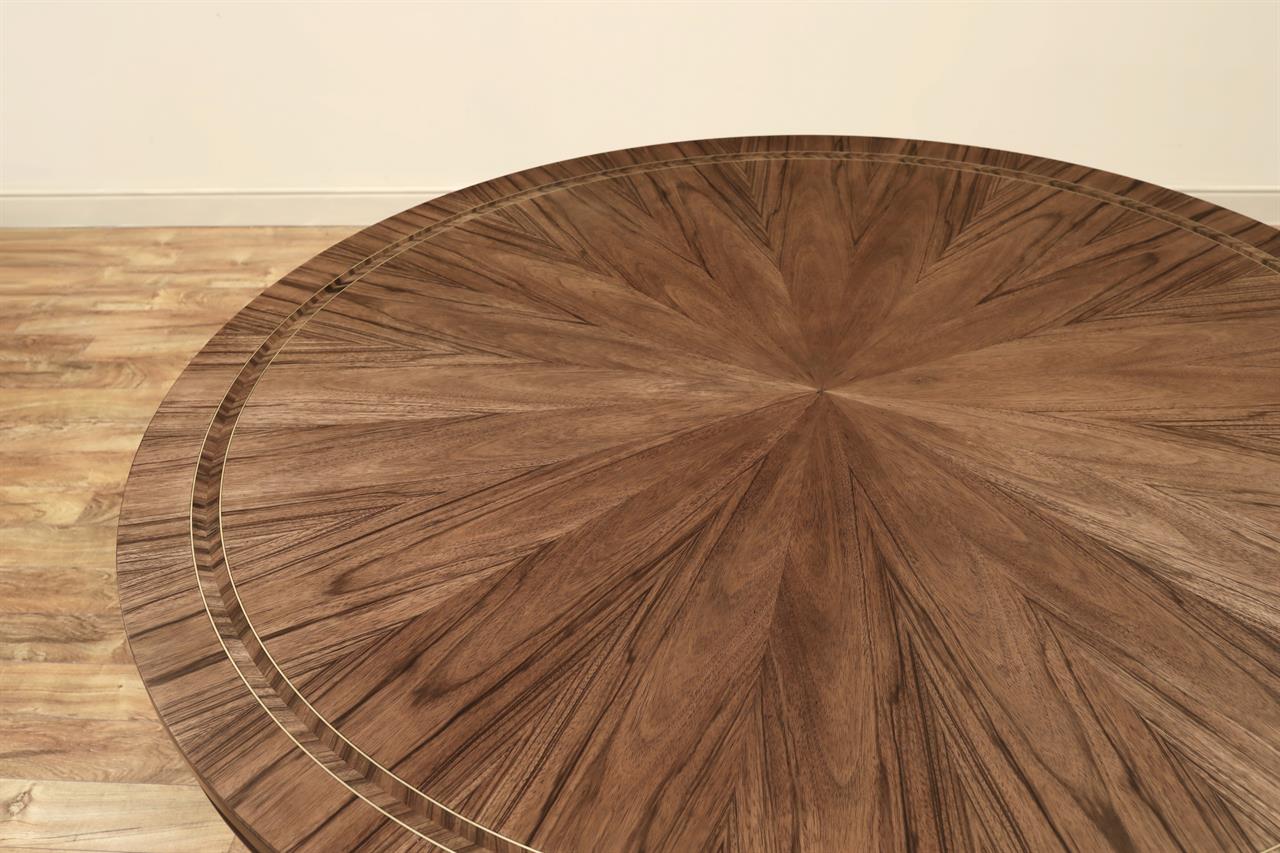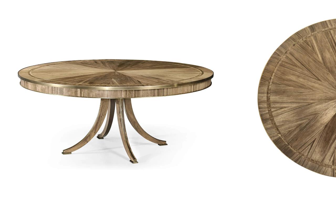 72-Inch Blonde Pedestal Table with Brass and Herringbone Inlays