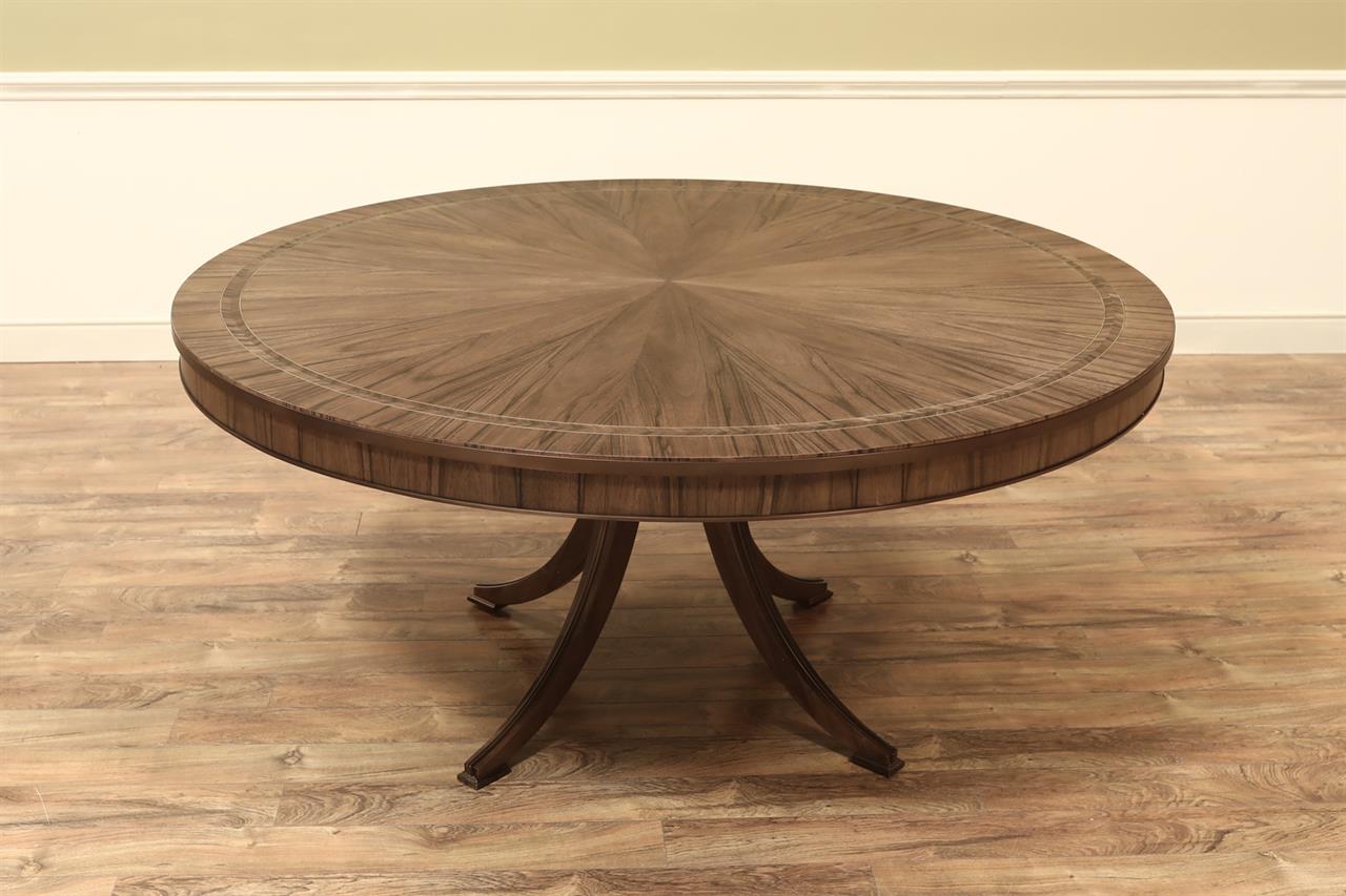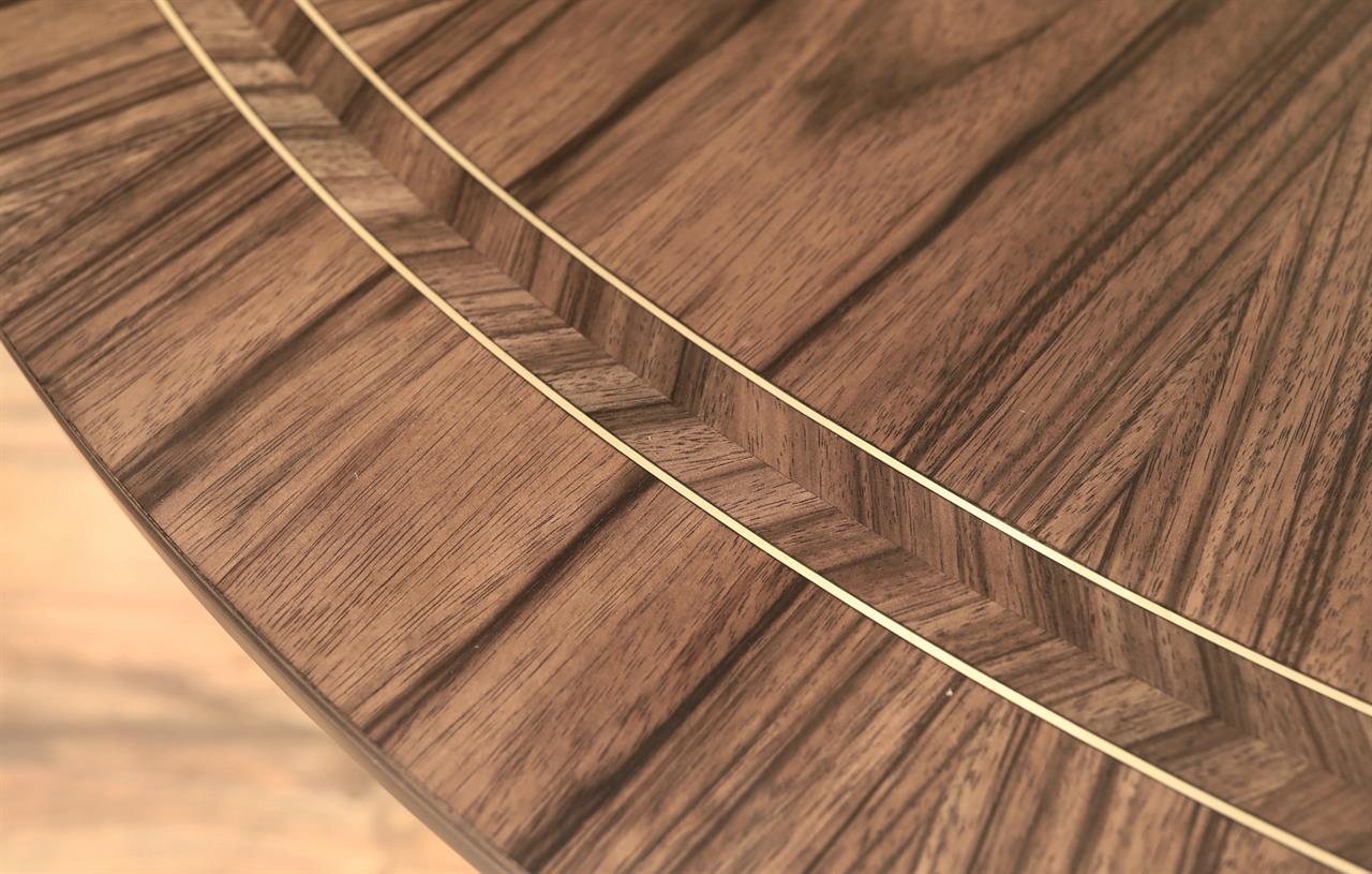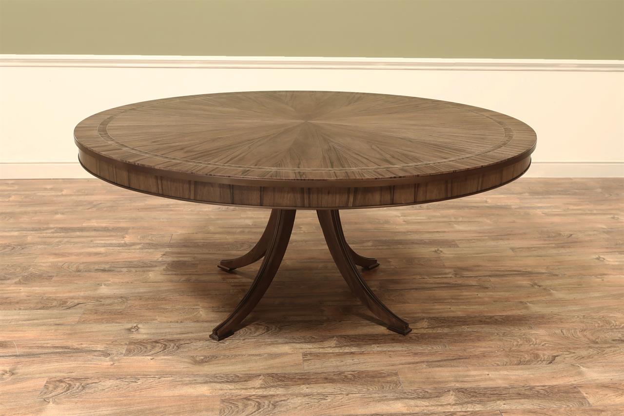 72-Inch Blonde Pedestal Table with Brass and Herringbone Inlays
