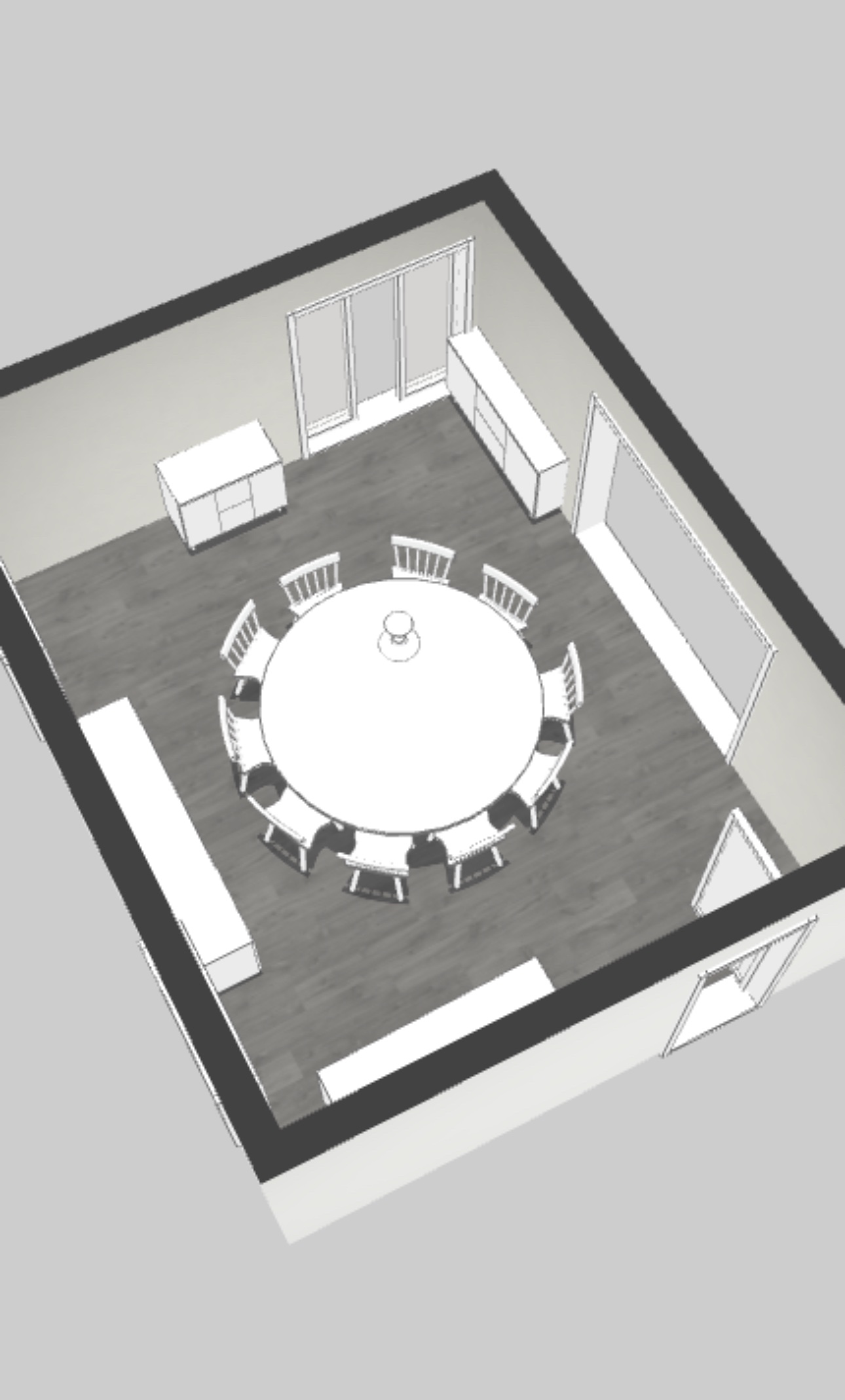 Home » Dining Room » Large round walnut dining table with leaf storage cabinet