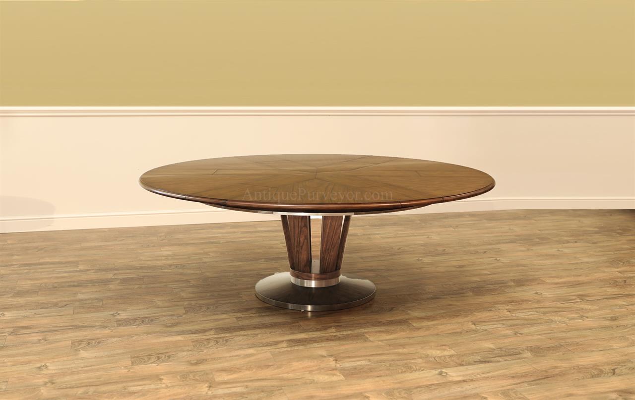 Contemporary Jupe Table, Large Modern Round Dining Table Opens to 84"