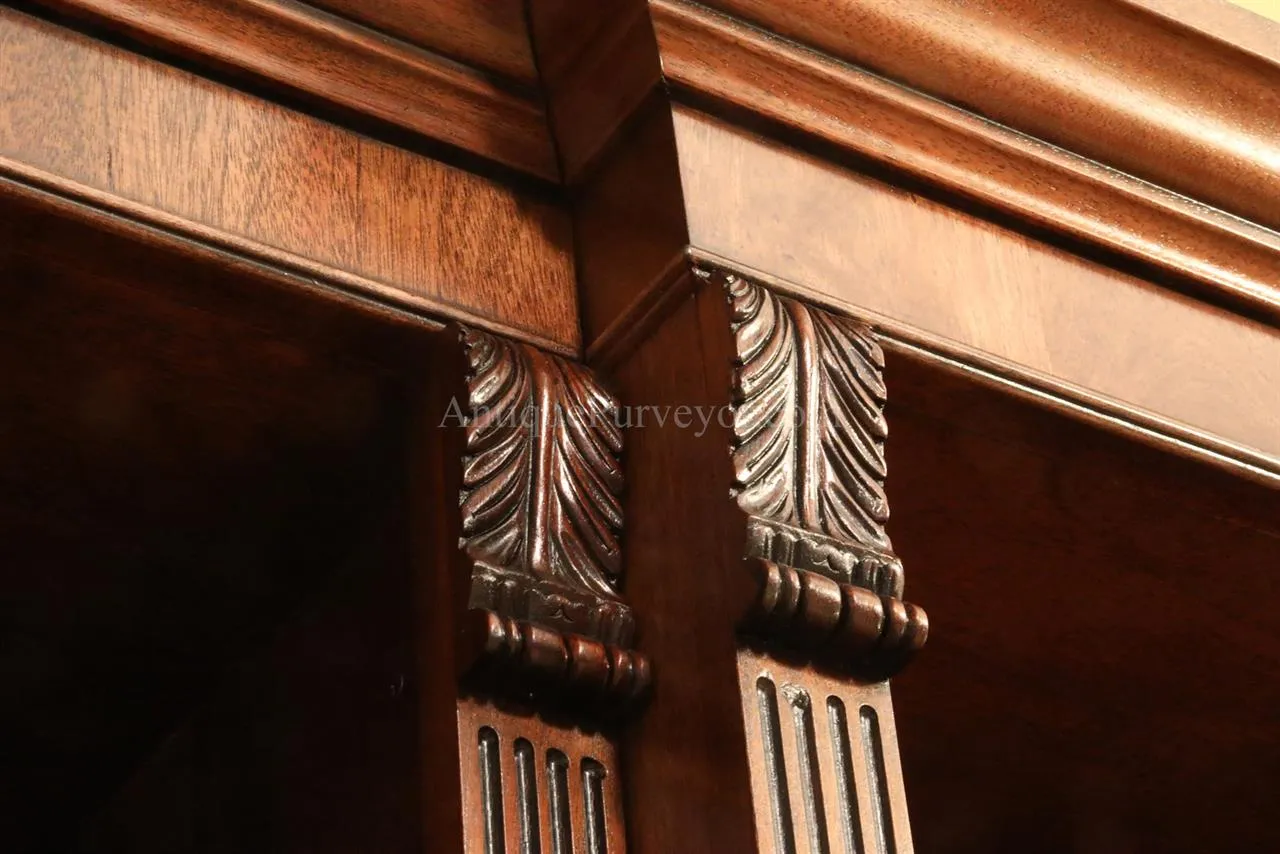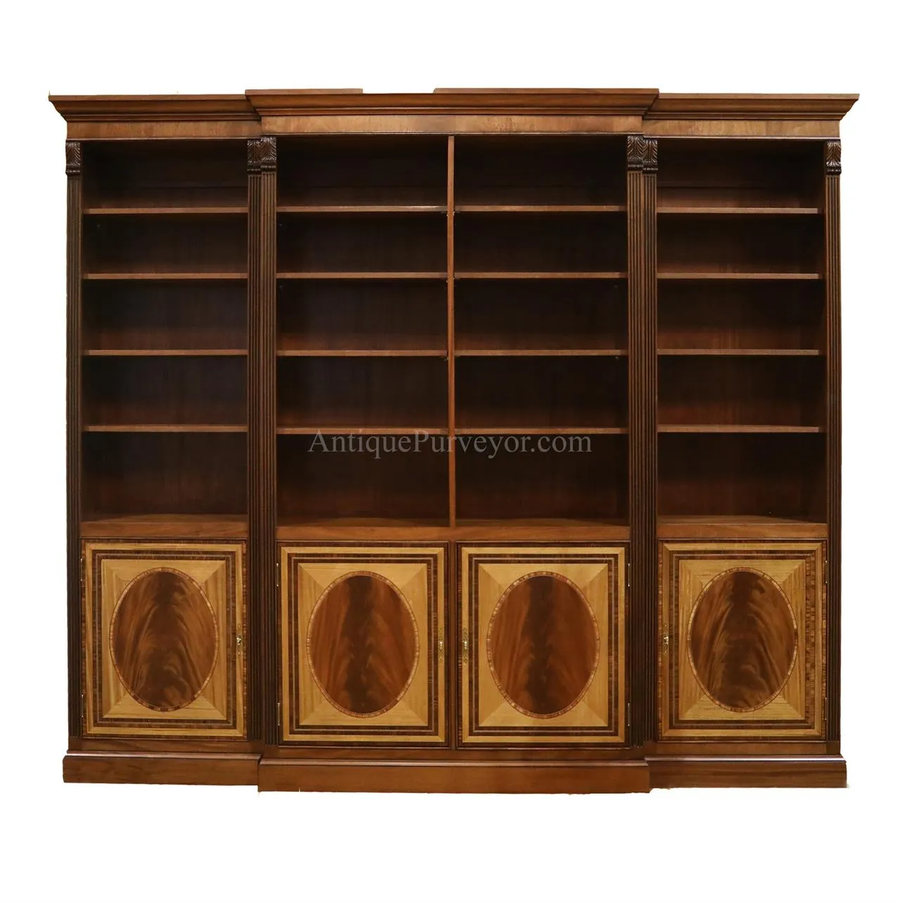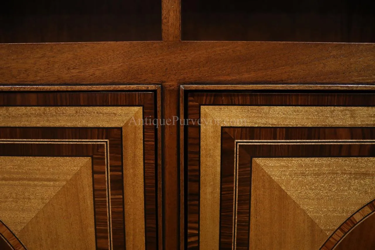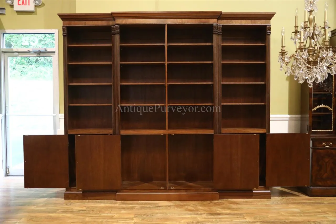Built to order this American made mahogany bookcase is second to none. Perfect for the high end home office or for a fancy lawyers office. Inlaid door panels and built by an American in America!