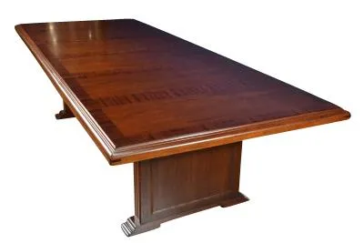 This conference table is constructed with a combination of cathedral mahogany, straight grain mahogany in the bands, and a solid mahogany edge. The table starts at 81 and with the help of leaves is expandable all the way out to 140 inches. This table will comfortably sit 8 people when closed for those smaller office meetings, all the way up to 14 people comfortably if you really need to get down to business. You may find mahogany conference tables that are more expensive, but you’ll be unlikely to find more quality. This table will impress any executive that sits at it.