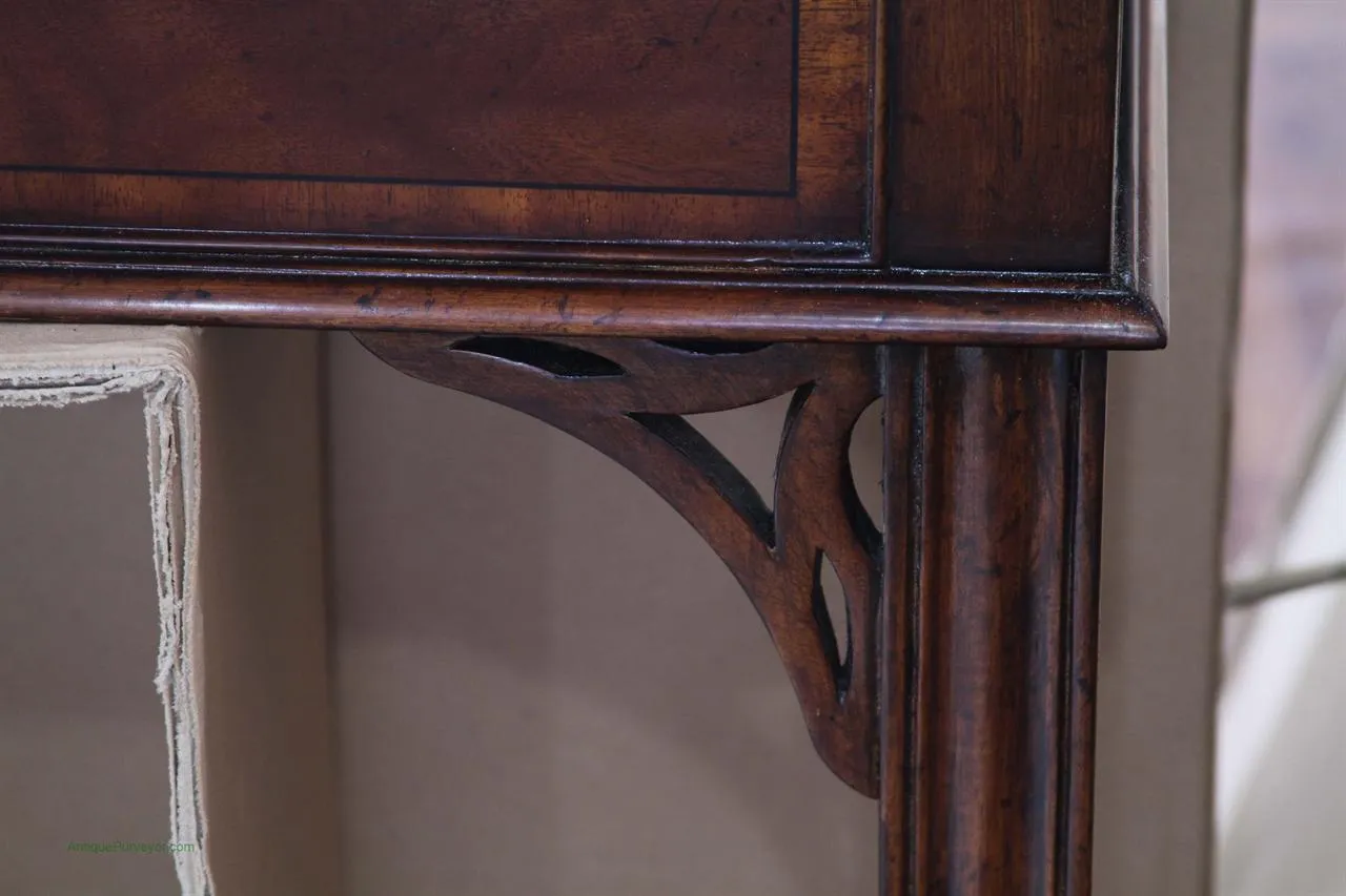 Home » Dining Room » Straight-leg mahogany writing desk with oak drawers and straight fluted legs.