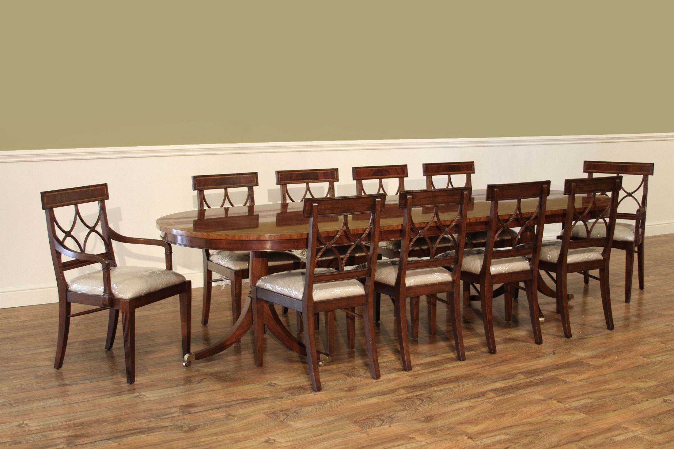 10-Foot Oval Double Pedestal Dining Table Seats 12 People