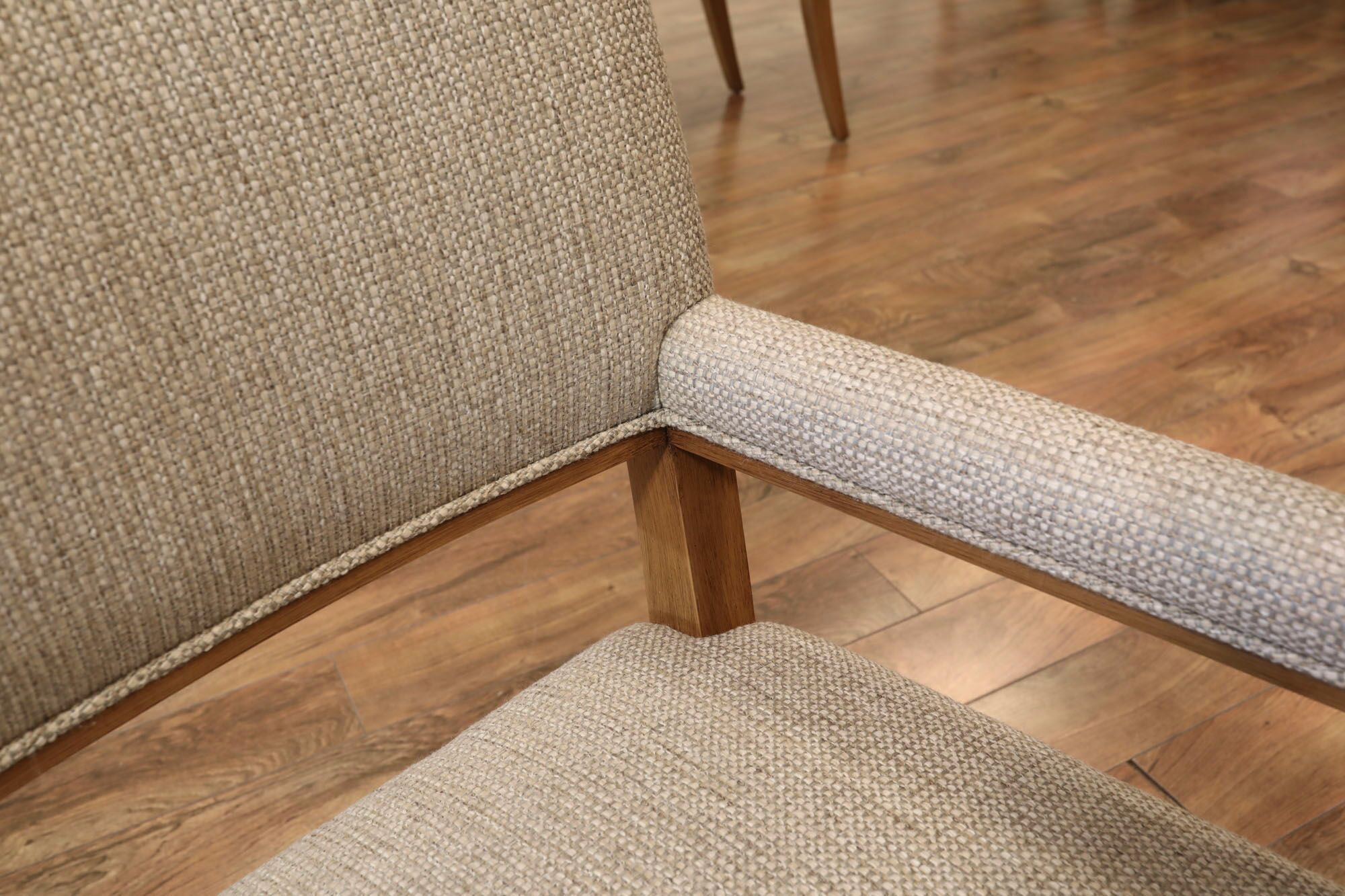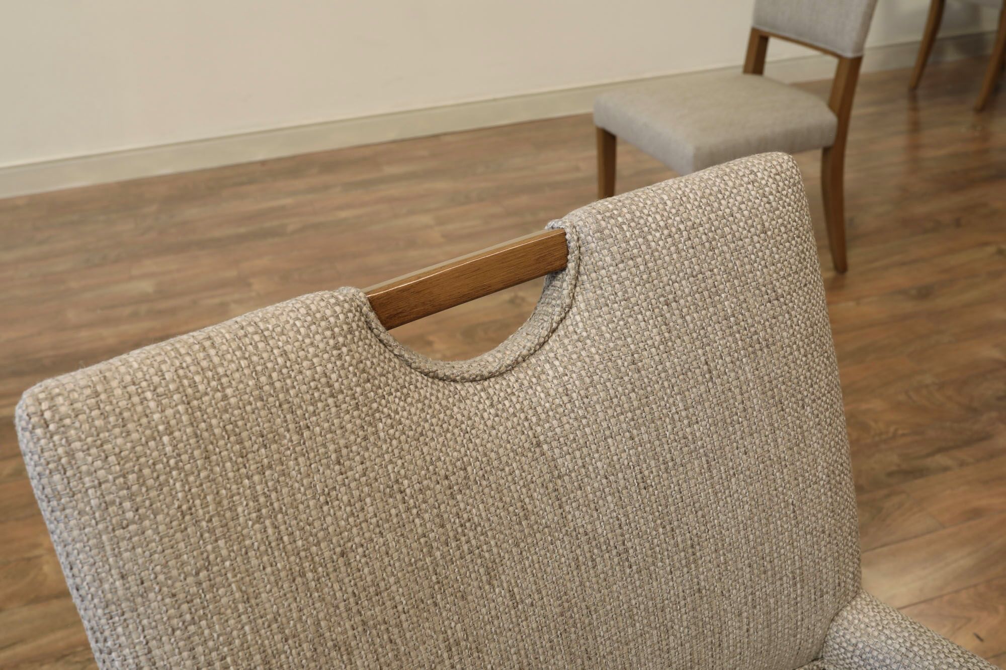 The chairs you see in our studio have a Chateau finish and Quinn Burlap upholstery. This chair is part of a custom American-made chair program that allows you to pick a finish and a fabric from a wide selection of options (too many to list). Many of the standard fabrics you can choose from are performance fabrics. Today’s performance fabrics are virtually stain-proof, and they are as soft as butter.