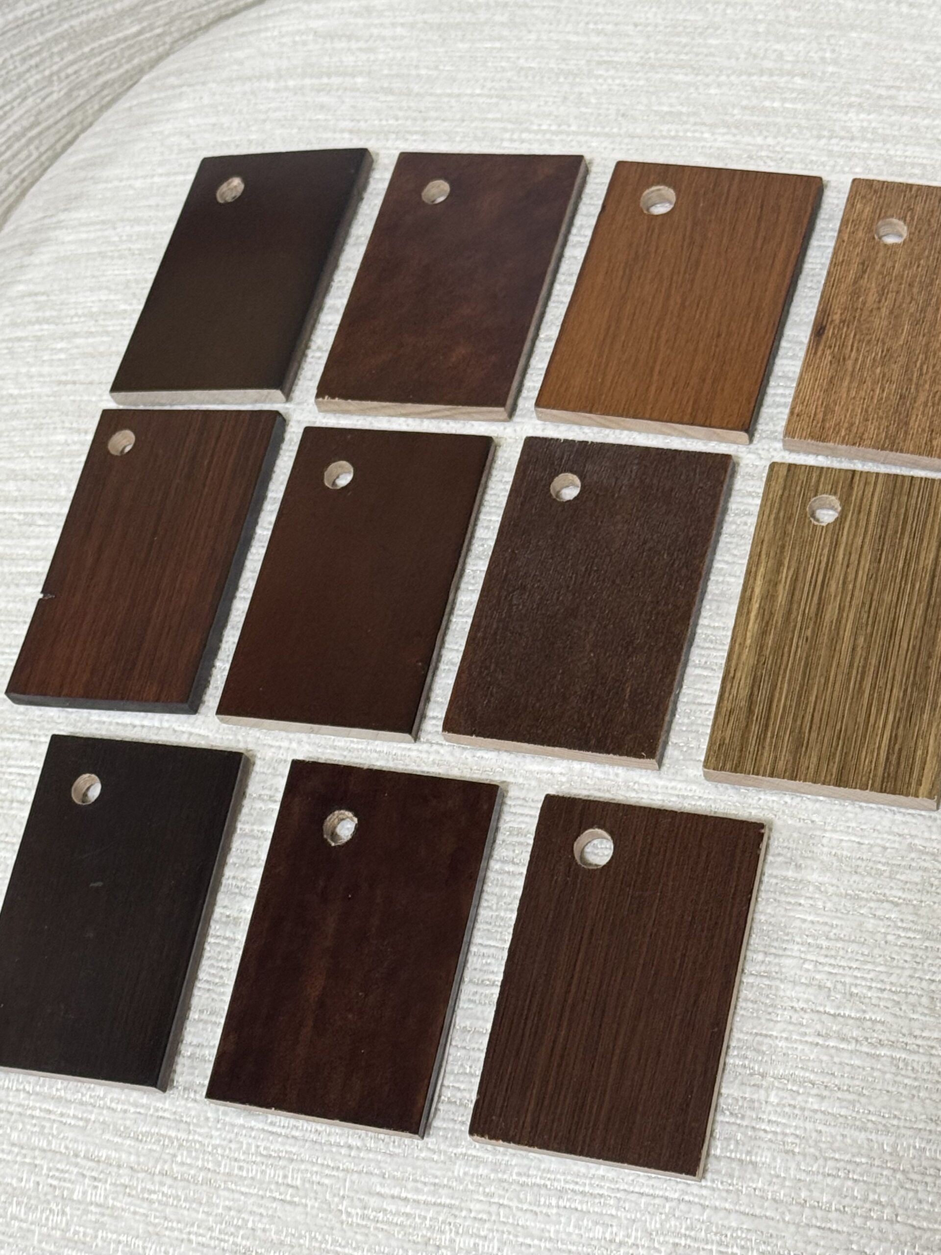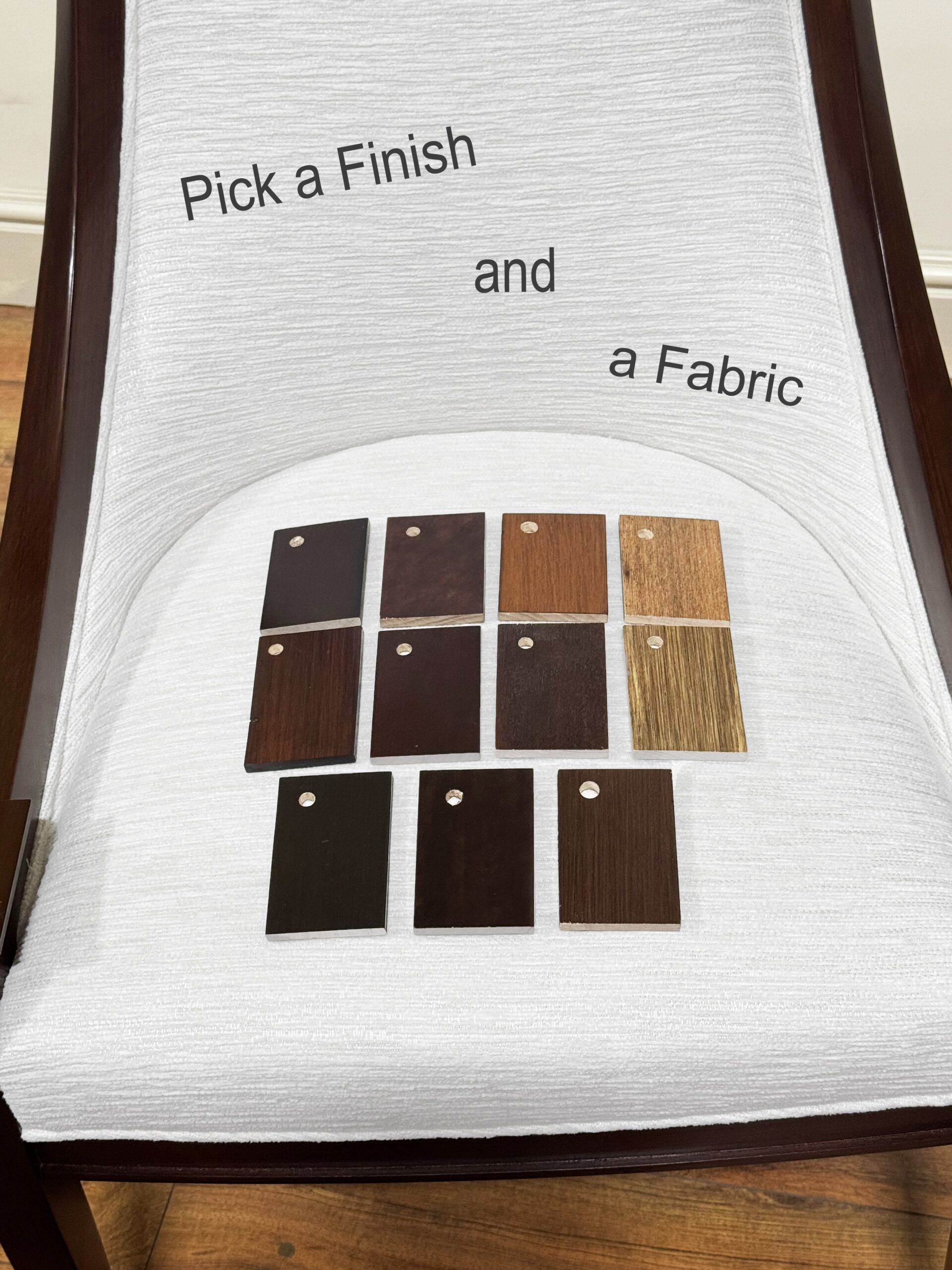 We show some wood finish options in the picture gallery, but the program changes and updates twice a year, so please inquire about current options when considering these chairs.