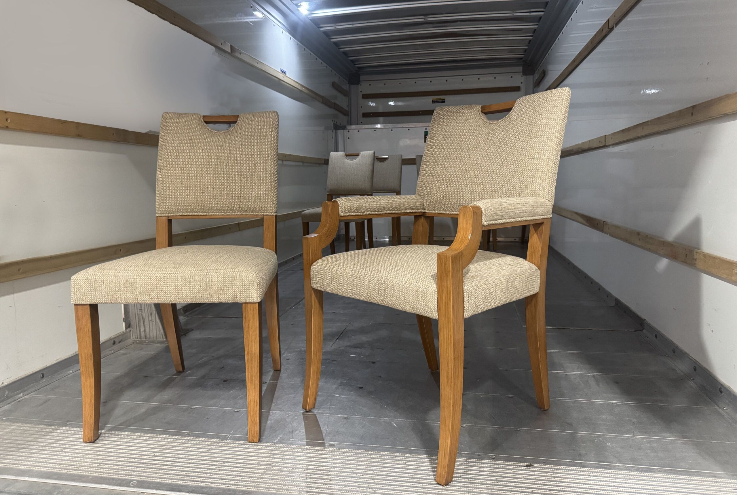 We can help with design recommendations and supply fabrics by Kravet or Fabricut. You can also do COM (Customer Ordered Material) on our custom upholstered chairs.
