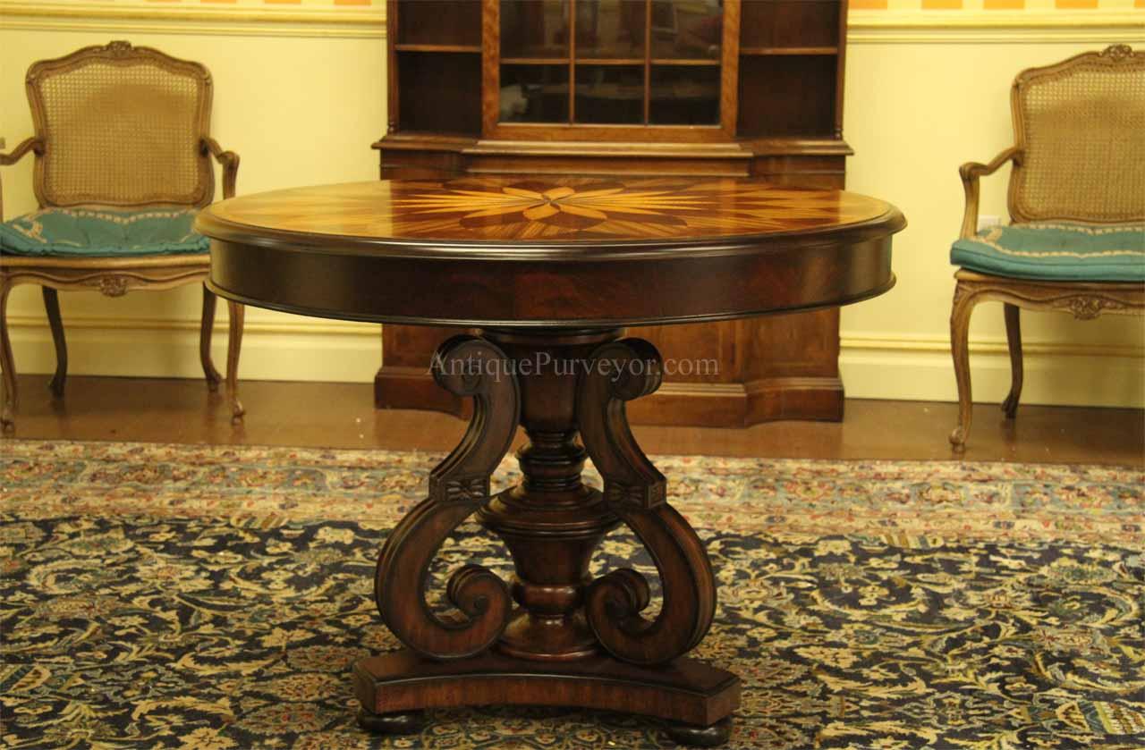 Traditional Inlaid Mahogany Center Table-Round Pedestal Table