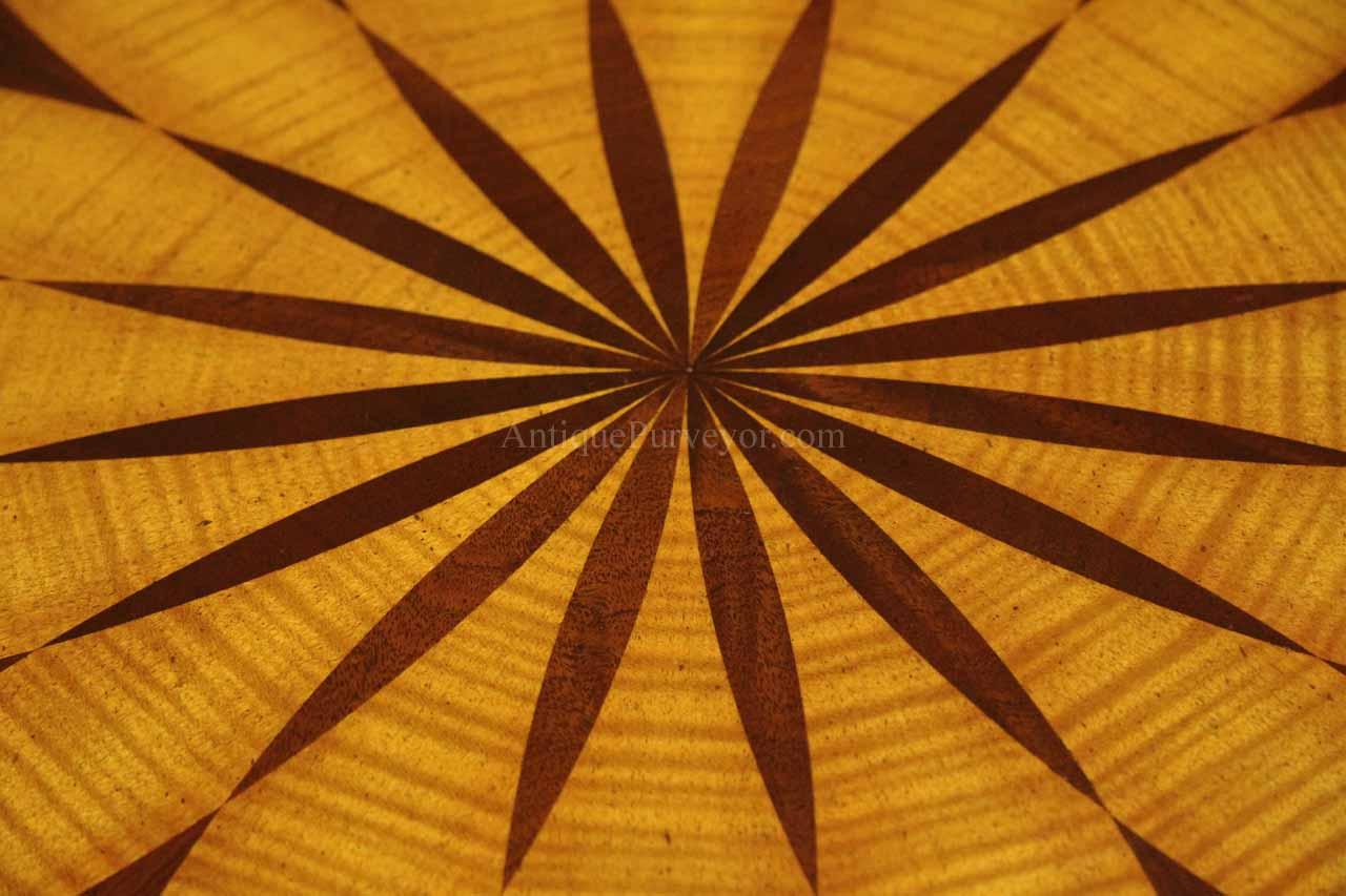 Home » Catalog » Inlaid entrance way table with satinwood floral inlays. Regency style pedestal base.