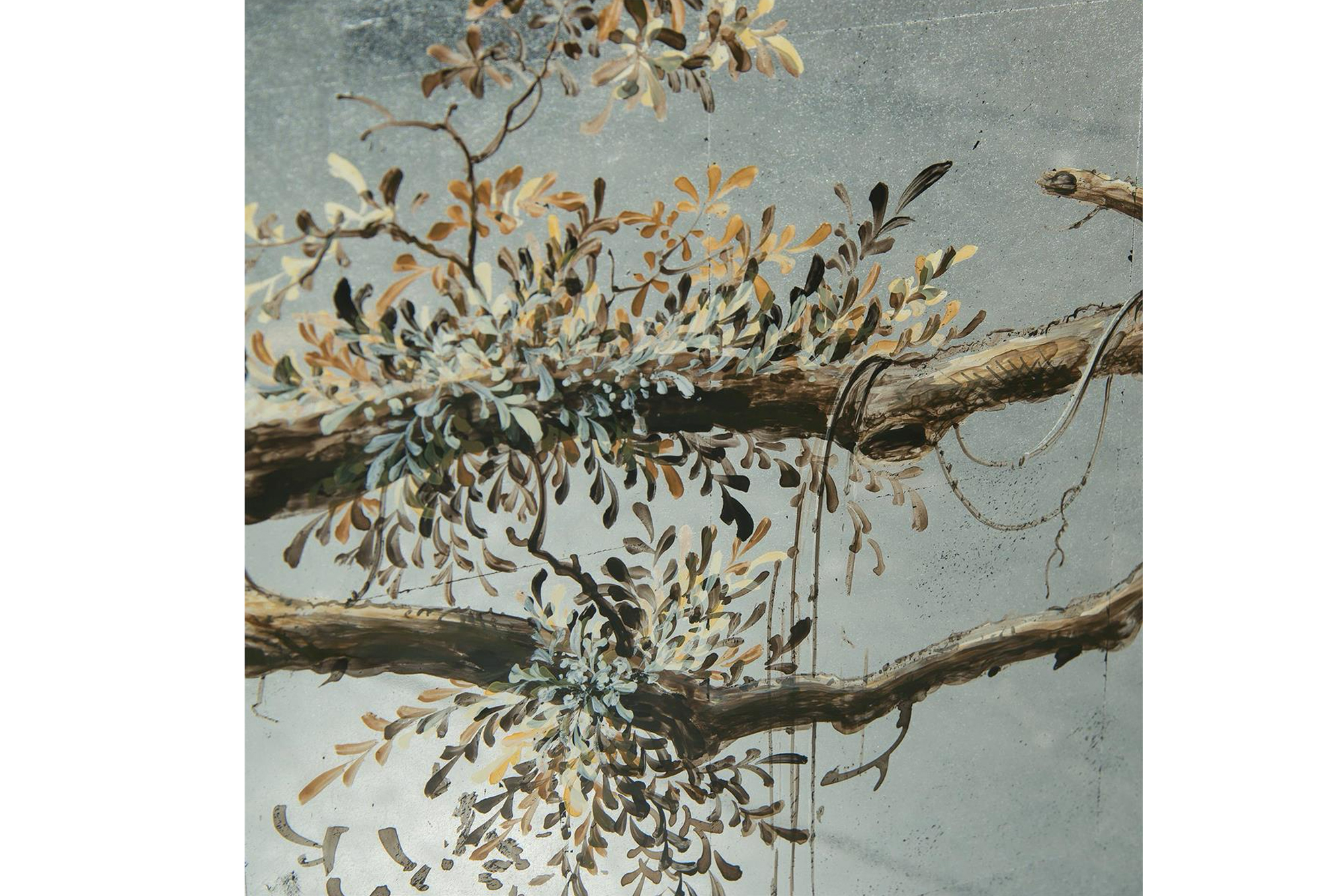 Reverse Glass Painted Branch and Leaves Sideboard