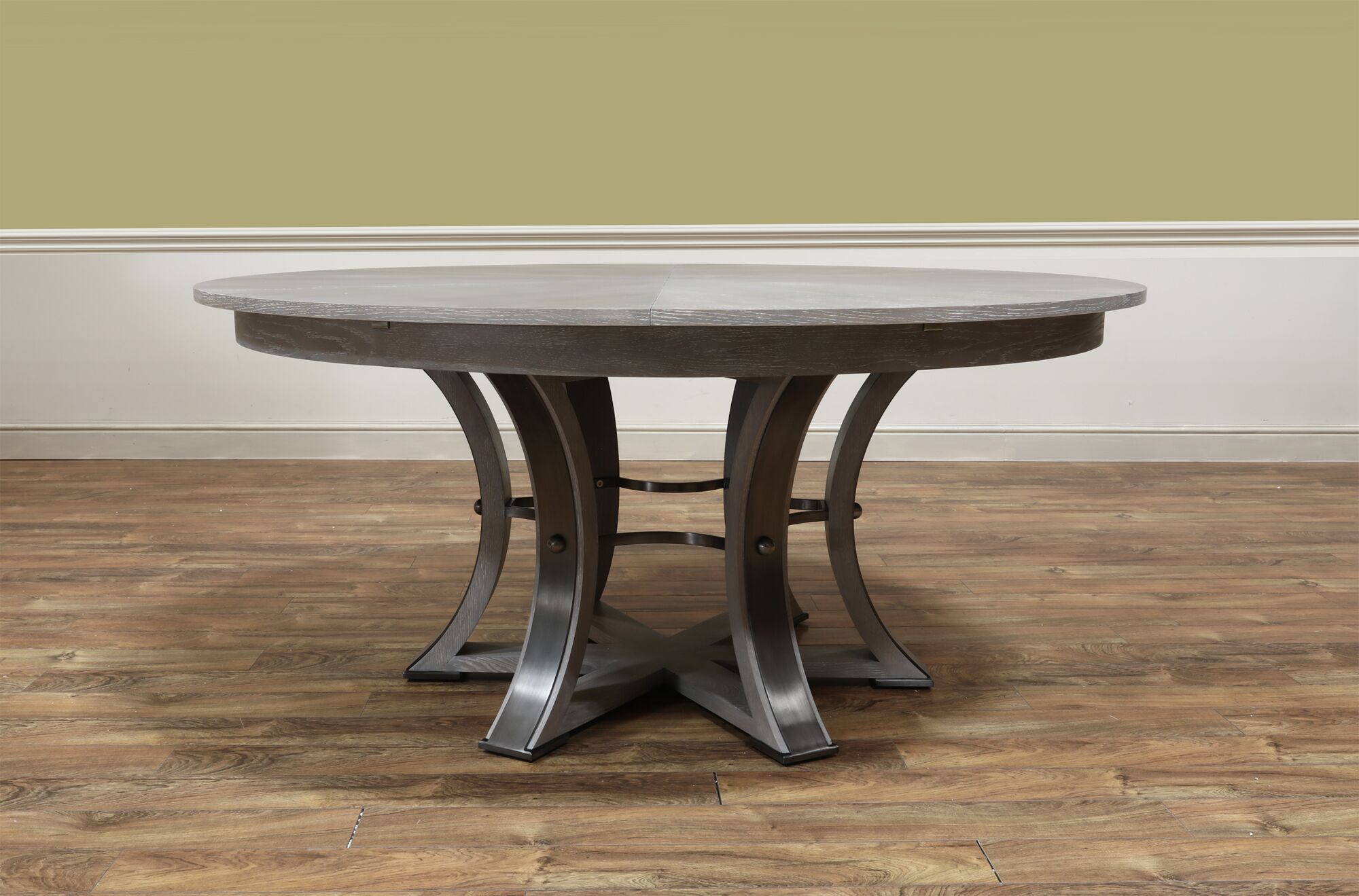 66-86 Large Round Casual Jupe Table with Bluish Gray Moonskin Finish
