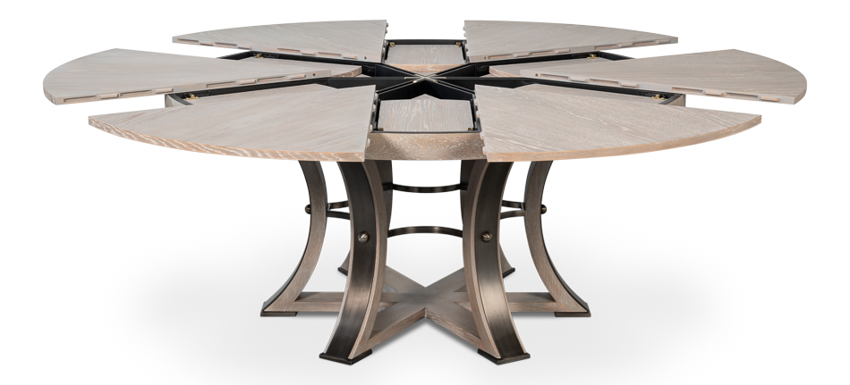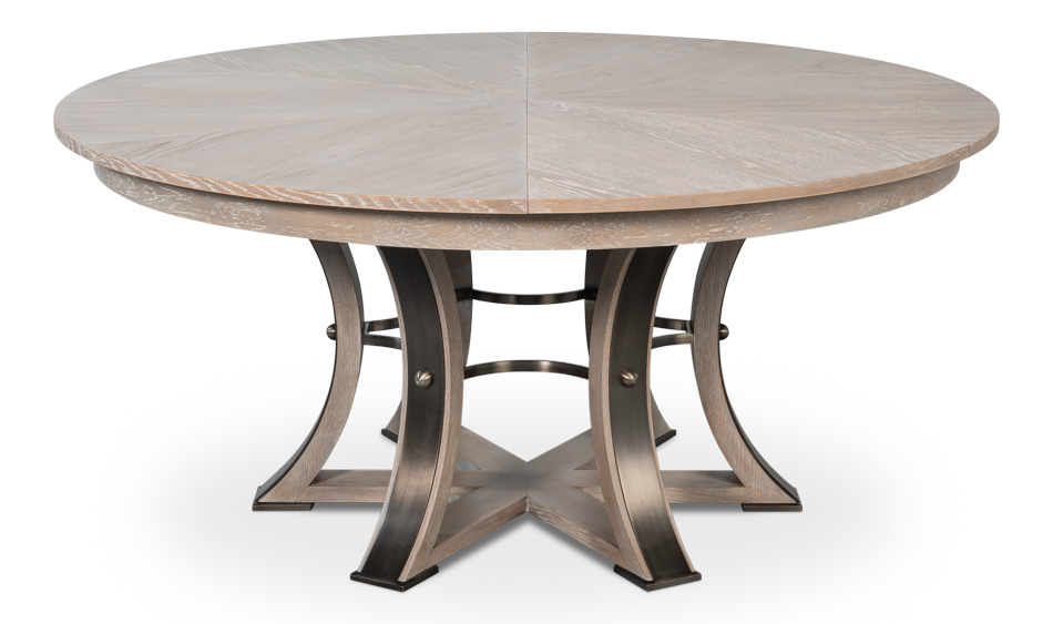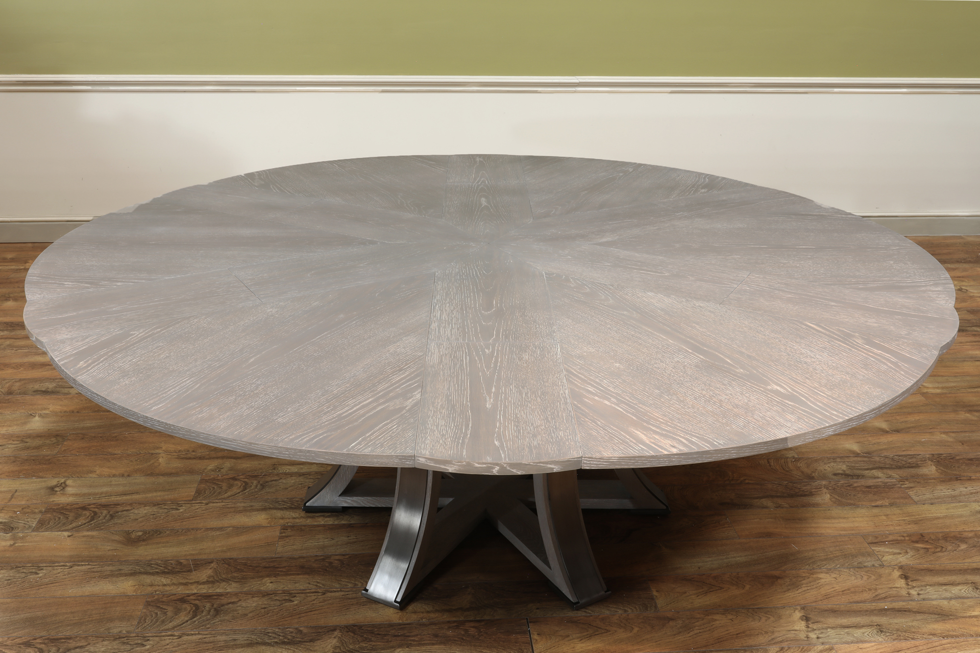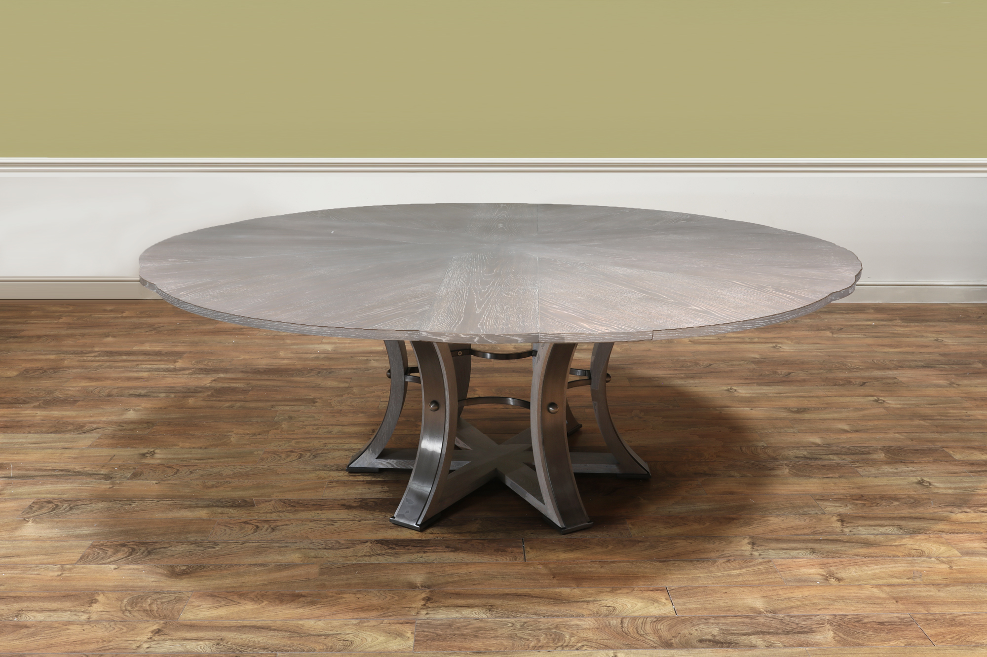 Home » Catalog » 66-86 Round Jupe Table, Gray and Blue Moonskin Finish
