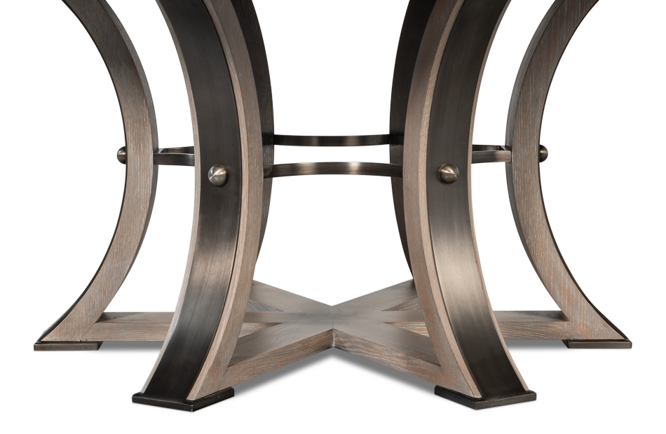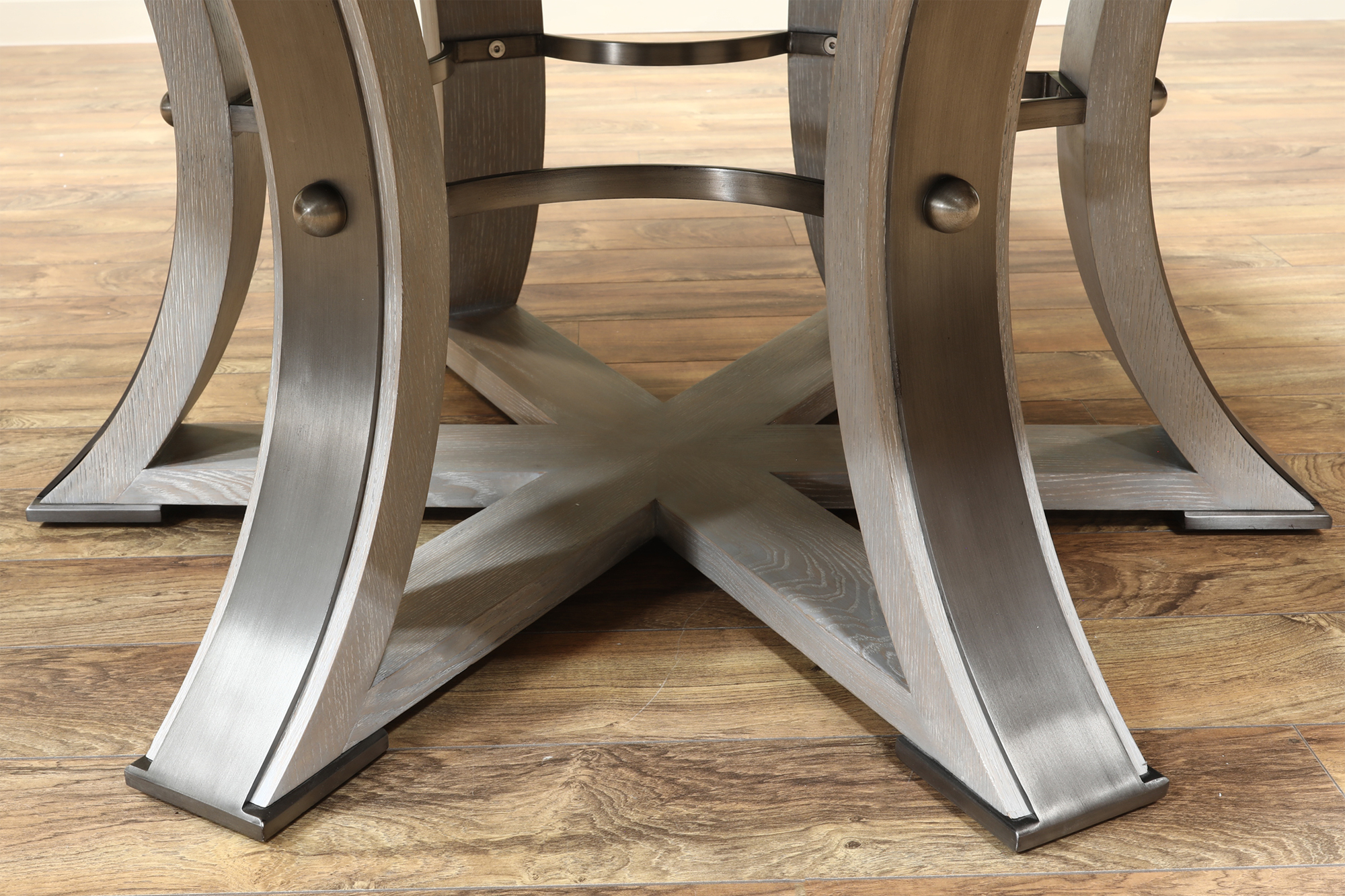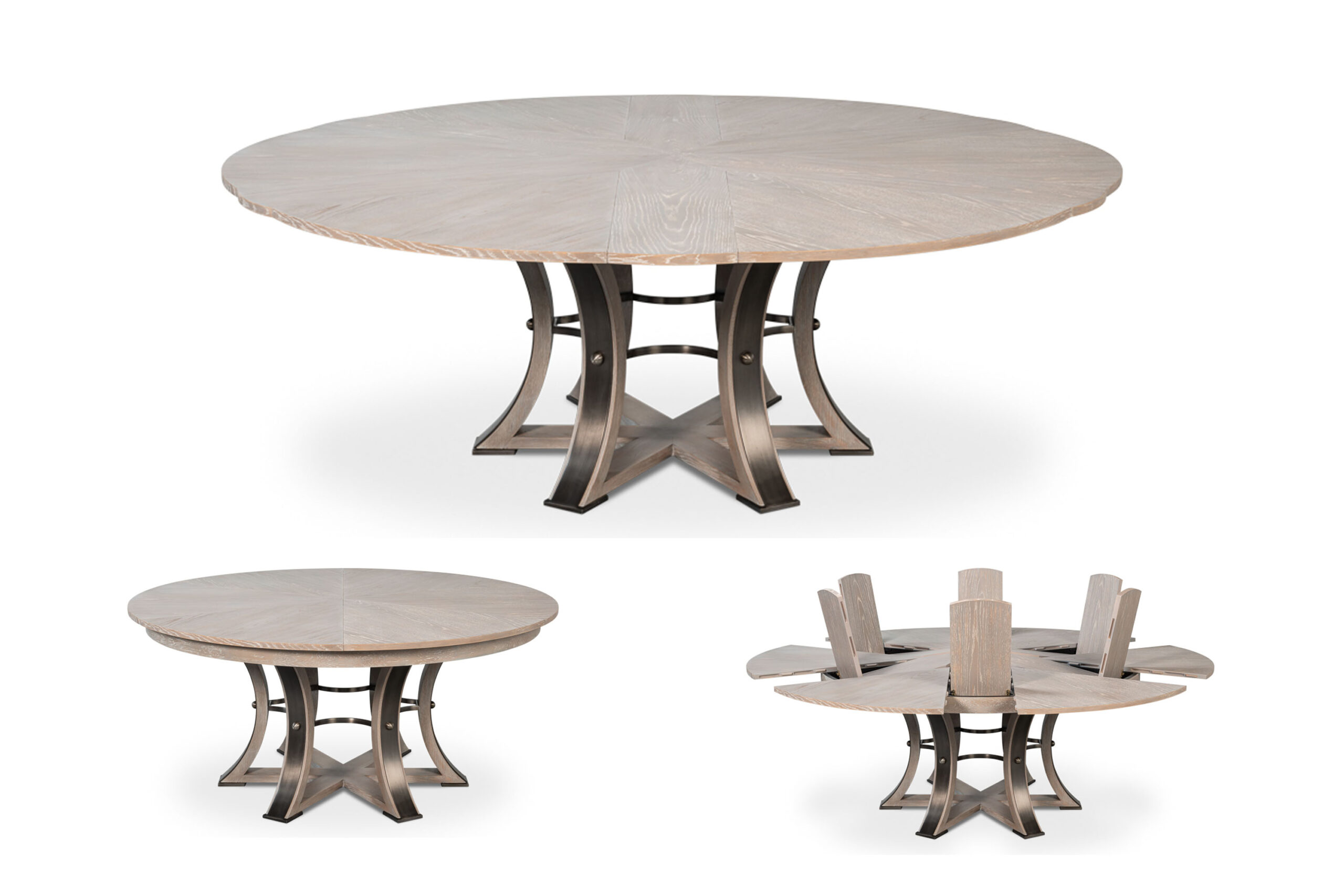 Home » Catalog » 66-86 Round Jupe Table, Gray and Blue Moonskin Finish