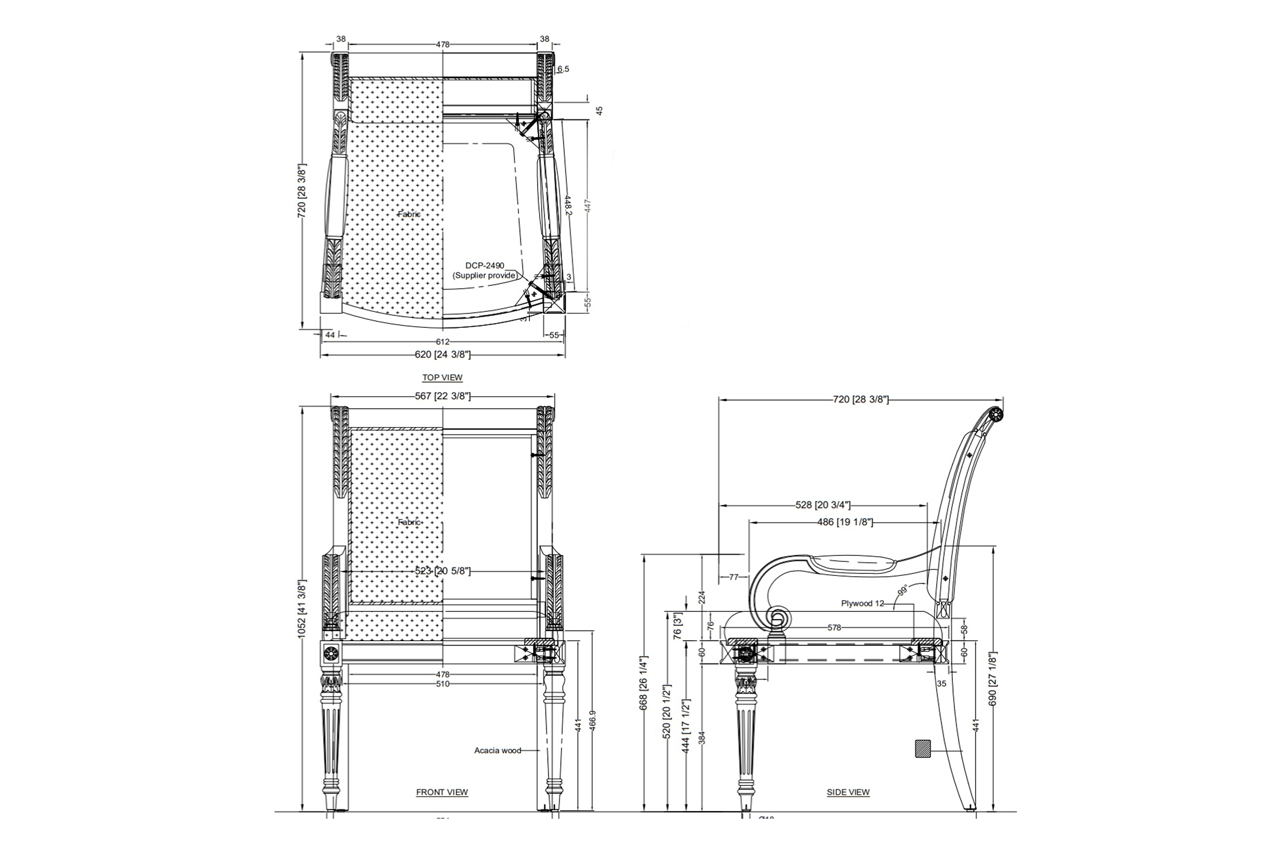 Measurements: Arm Chair 24Wx23Dx40H, Side Chair 22Wx22Dx40H Seat Frame Height 17.5″ Seat Cushion Height 20.5″ Arm Height 26.25″